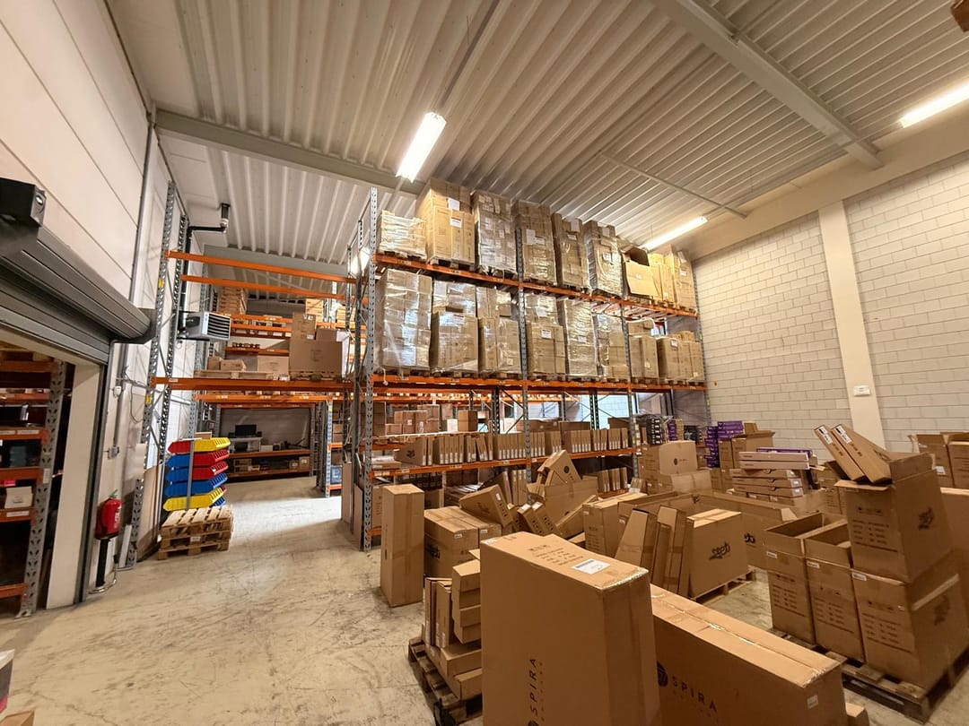 - Lichtstraten, overheaddeuren, betonvloer, heater, toilet, inbouwarmaturen en te openen ramen