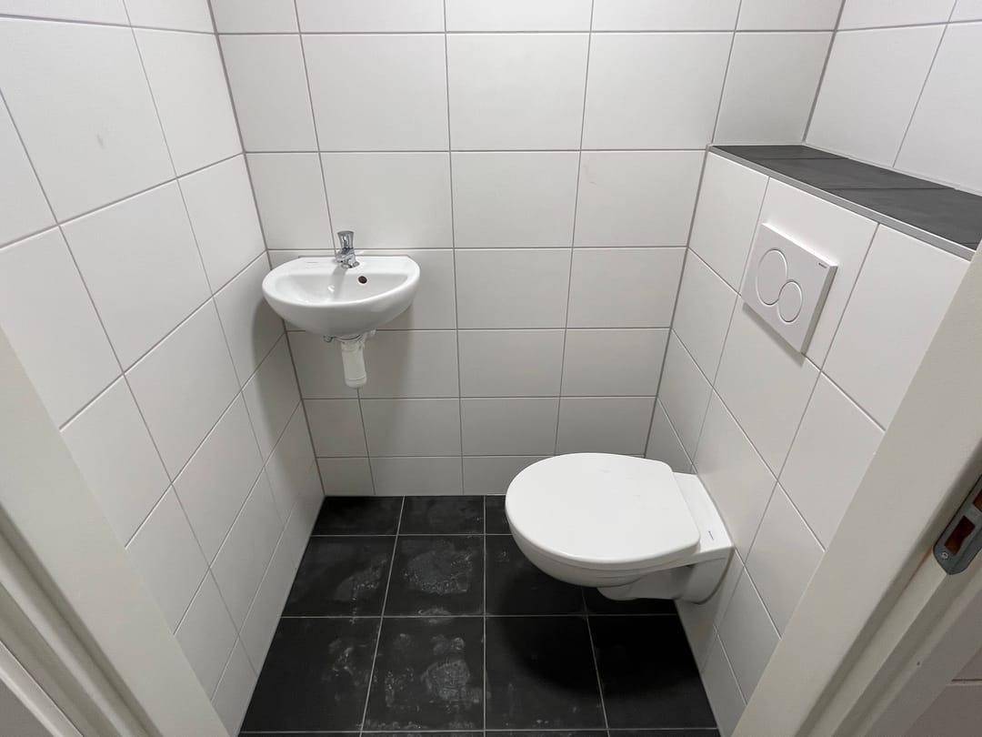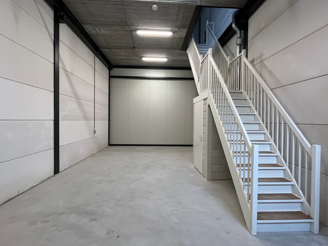 - Overheaddeuren, betonvloer, toilet en te openen ramen