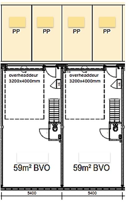 · Ca. 59 m² b.v.o. bedrijfsruimte op de begane grond;