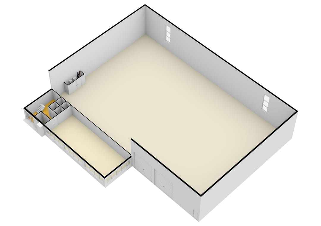 - Overheaddeuren, krachtstroom, betonvloer, heater, toilet, mechanische ventilatie, inbouwarmaturen en te openen ramen