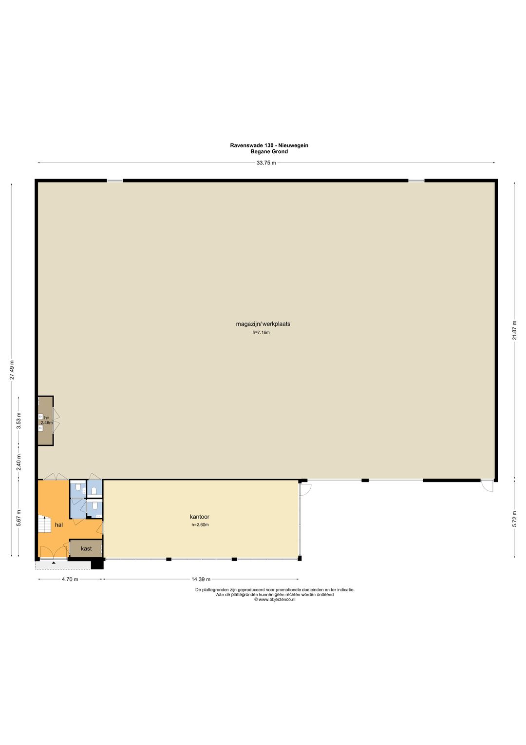 - Vrije hoogte van circa 6 meter onder stalen spanten en circa 7,20 meter tot aan dak