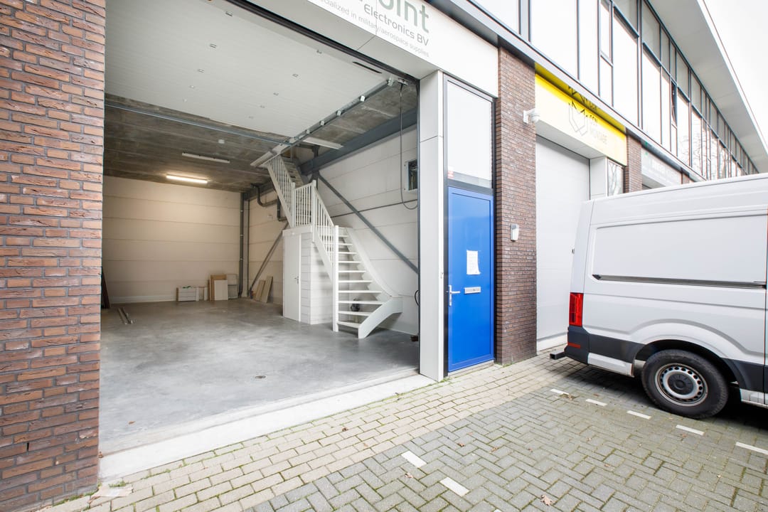 - Elektrisch bedienbare overheaddeur met een hoogte van 3,8 meter en breedte van 3,4 meter;