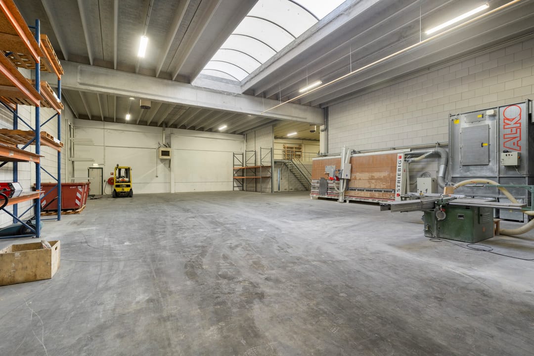 - Lichtstraten, overheaddeuren, krachtstroom, betonvloer, heater, toilet, pantry, airconditioning en te openen ramen