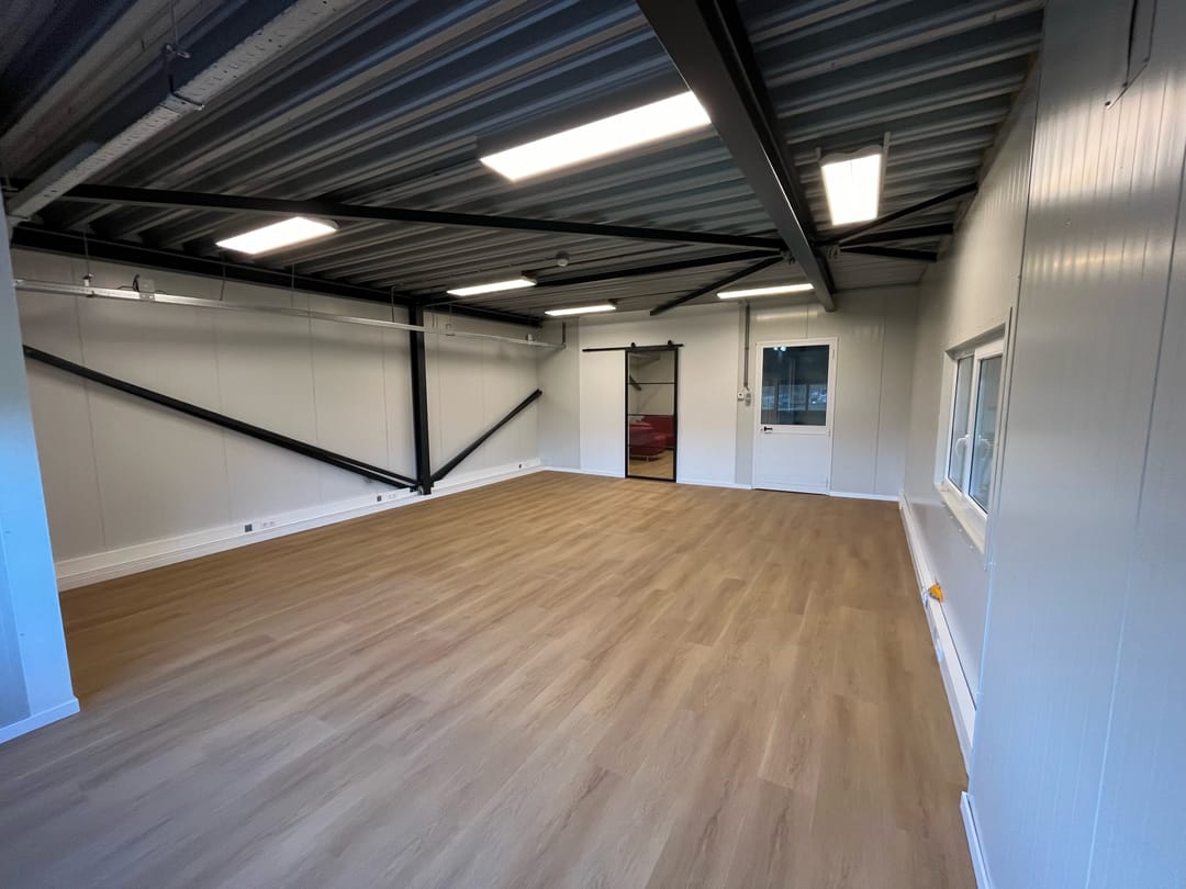 - Overheaddeuren, krachtstroom, betonvloer, heater, toilet, pantry en te openen ramen
