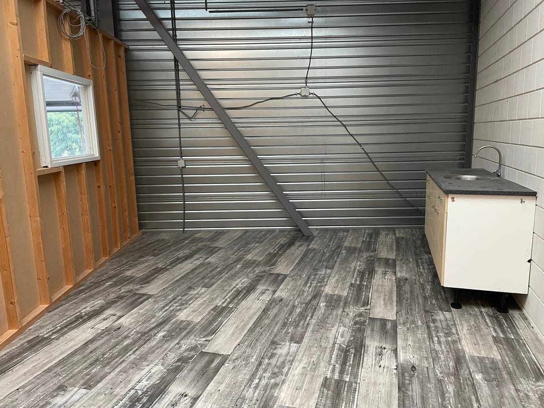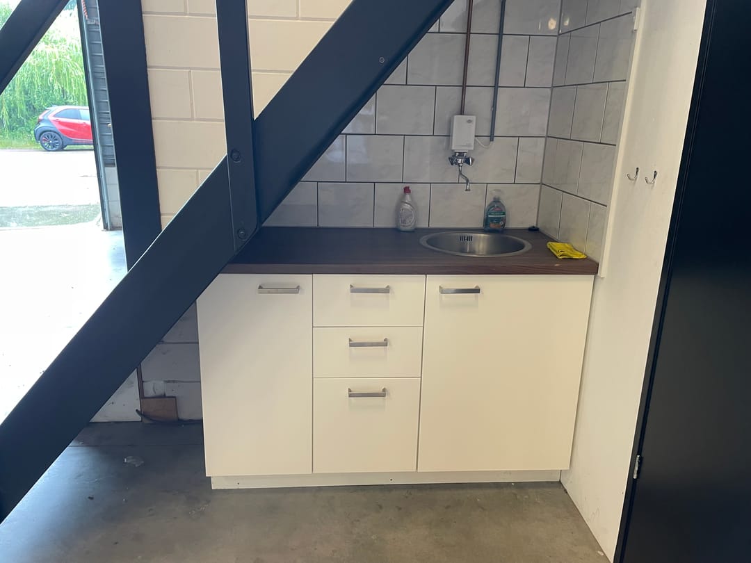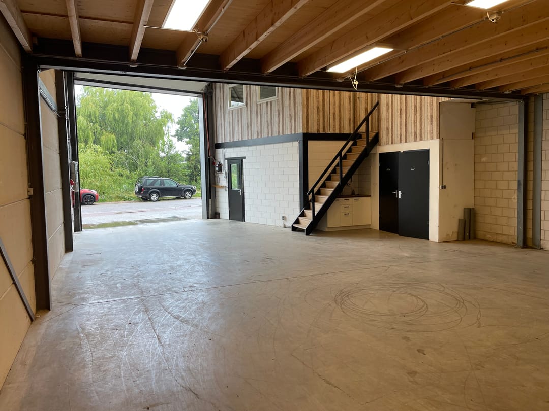 - Lichtstraten, overheaddeuren, betonvloer, heater, toilet en pantry