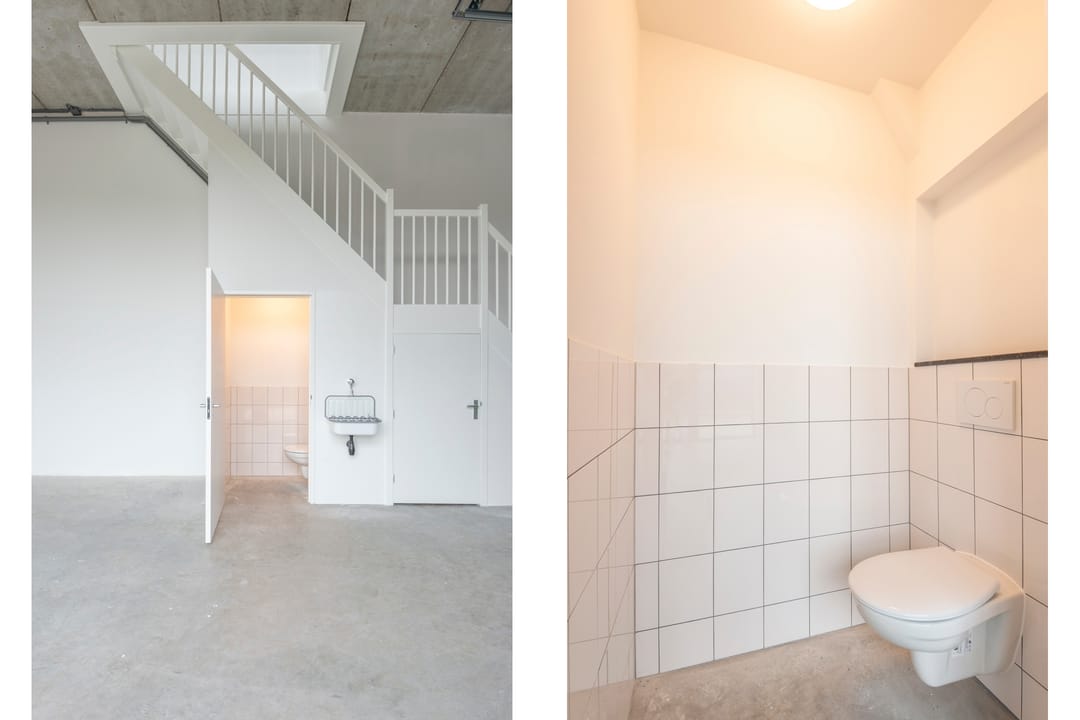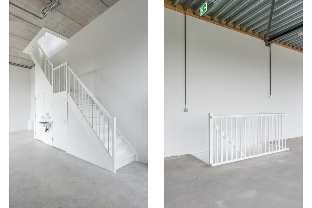 Op de begane grond vind je de bedrijfsruimte met een eigen entree, toilet, meterkast en trap naar boven. Op de eerste verdieping ligt een open kantoorruimte met een pantry.