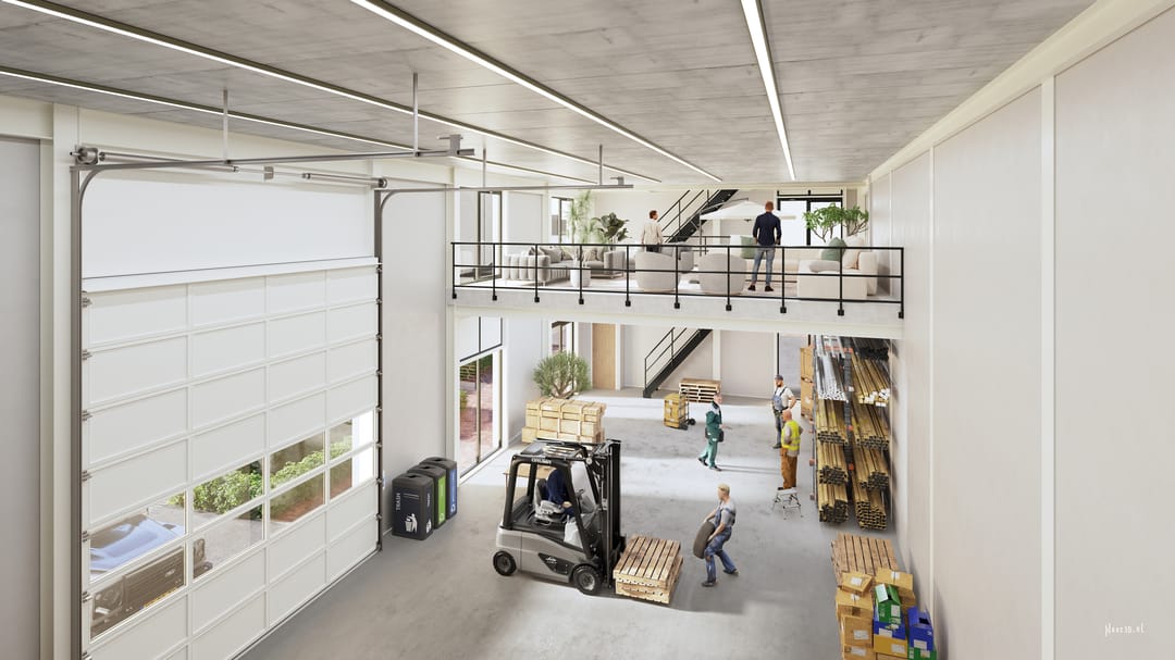 Elk bedrijfsgebouw is verdeeld over drie volwaardige niveaus: een ruime begane grond, een betonnen entresolvloer en een volledige tweede verdieping. Deze opbouw zorgt voor een prettige scheiding tussen werken, opslaan en ontvangen, waardoor de ruimte zich uitstekend leent voor bijvoorbeeld een combinatie van kantoor, showroom en bedrijfsruimte.