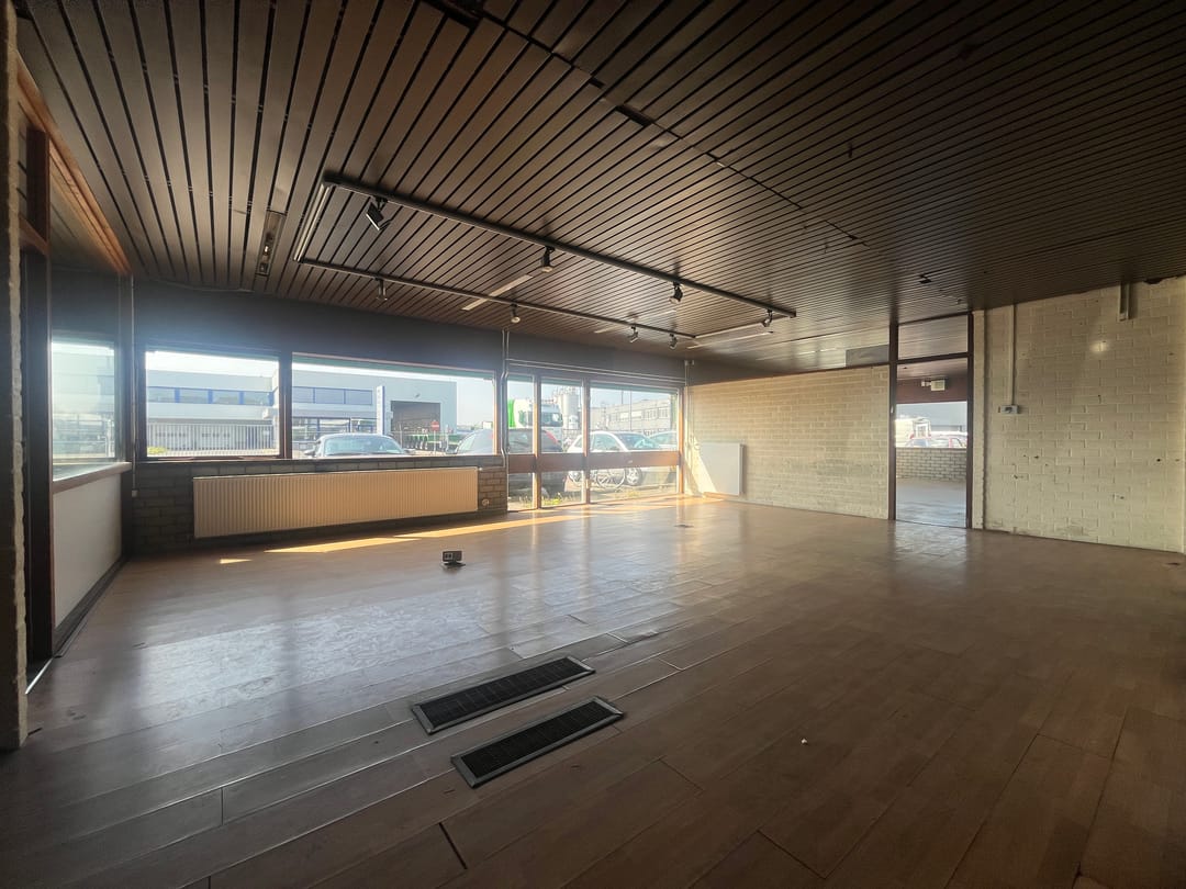 De begane grond van circa 250 m² beschikt over royale glaspartijen aan de voorzijde, wat zorgt voor veel daglicht én een uitnodigende uitstraling – ideaal voor ondernemers die hun producten willen presenteren of behoefte hebben aan een zichtlocatie. De ruimte is verder voorzien van een toilet en een keukenblok.