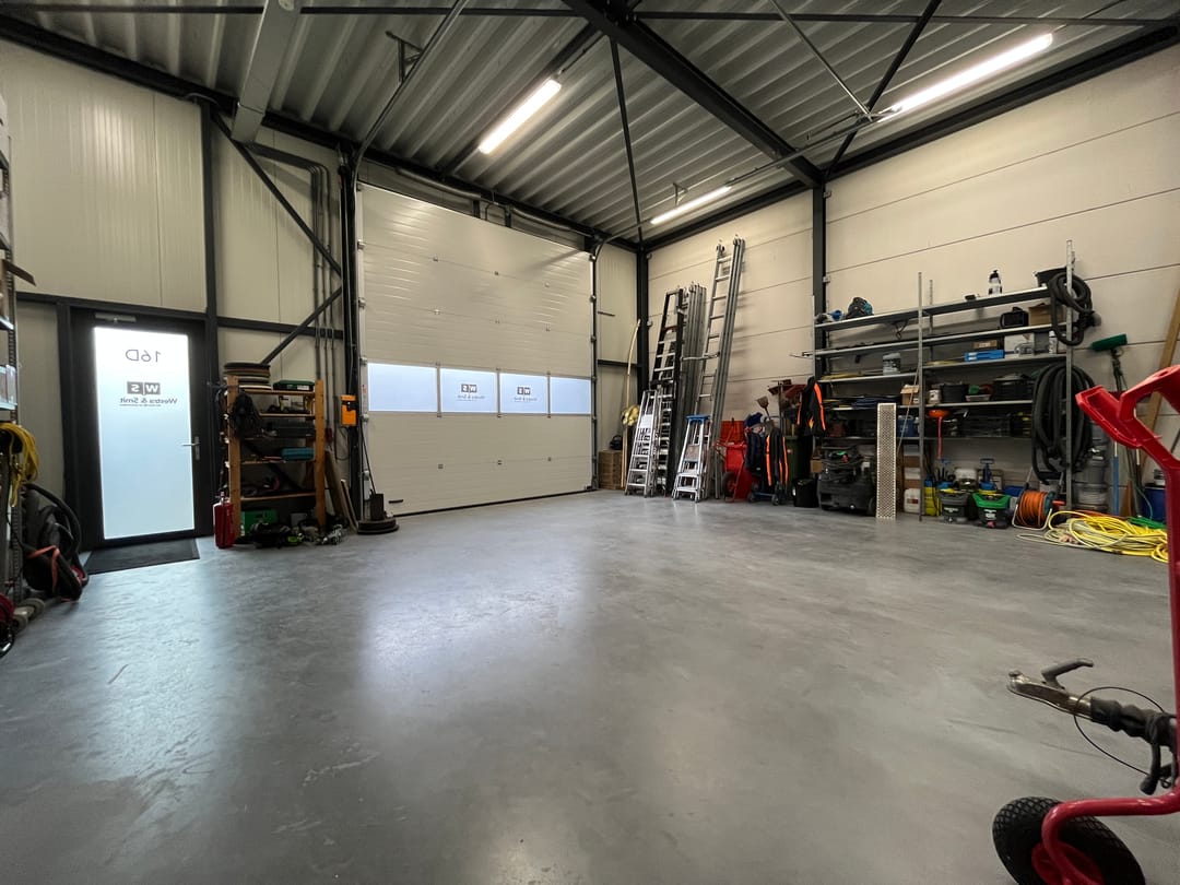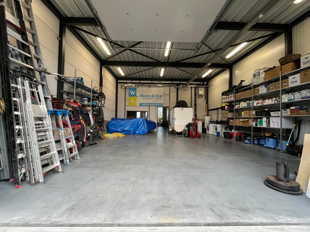 - Mechanische ventilatie, topkoeling, lichtstraten, overheaddeuren, betonvloer, toilet, pantry, inbouwarmaturen en te openen ramen