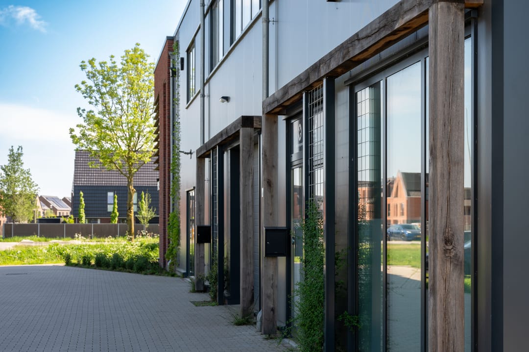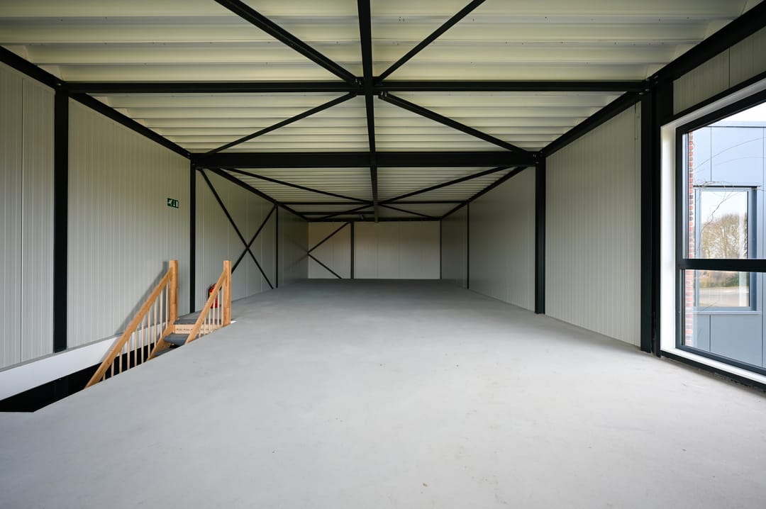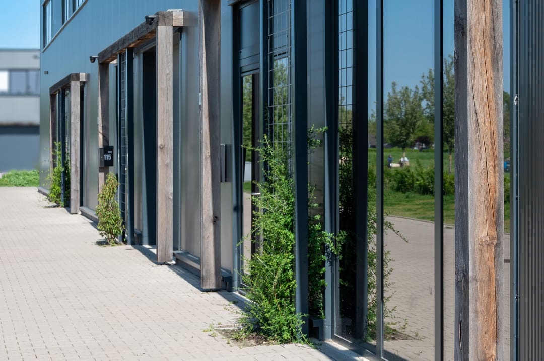 Deze representatieve bedrijfsunit (B2) is gelegen op een goed zichtbare hoek aan de voorzijde van het complex. De metselwerk gevels met houten elementen geven deze unit een moderne en kwalitatieve uitstraling, ideaal voor ondernemers waarvoor zichtbaarheid en uitstraling als eerste kennismaking met hun bedrijf belangrijk is.