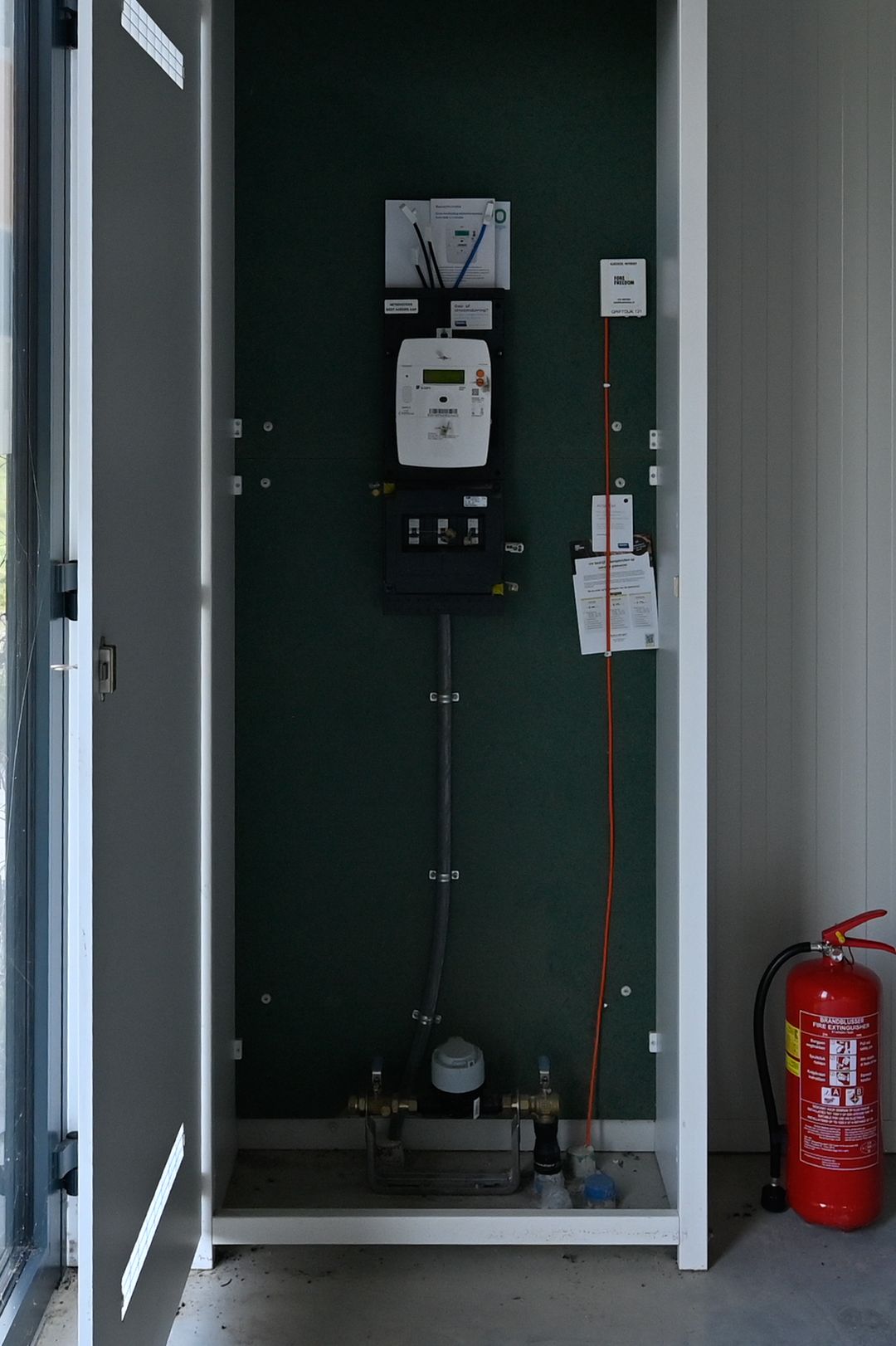 - Meterkast met elektra-aansluiting (3x25A), water- en glasvezelaansluiting