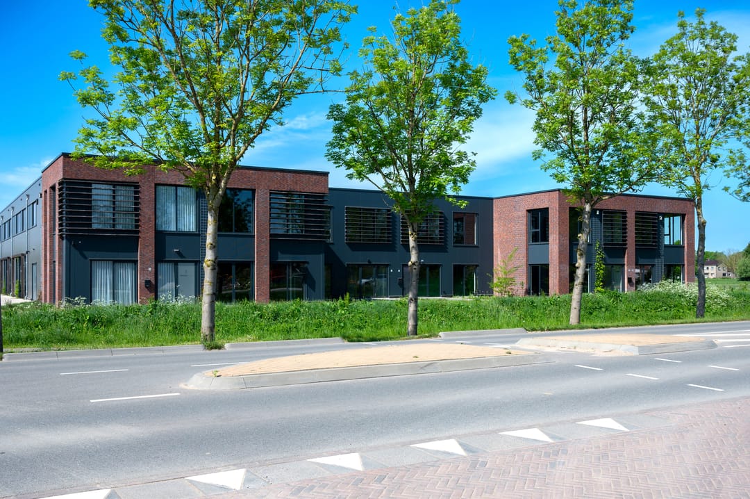 Parkeren is ruim opgezet aan de achterzijde van het bedrijventerrein en op het tussenliggende terrein, waar tevens laadpunten voor elektrische voertuigen aanwezig zijn.