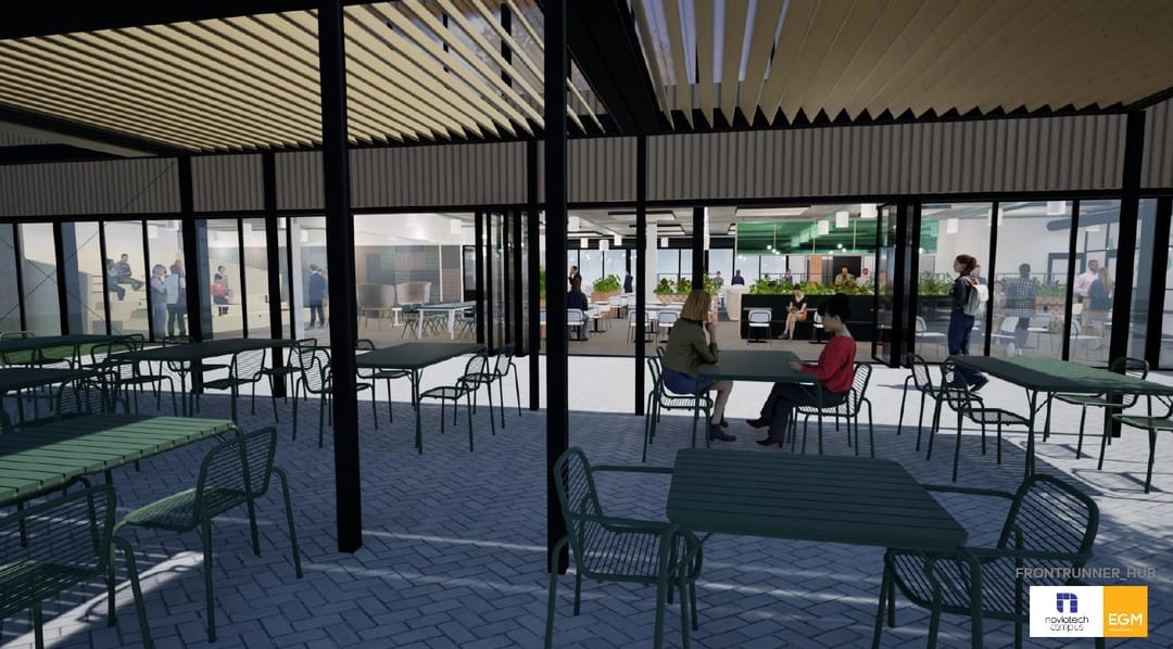 The Frontrunner is 2.740 m² (BVO) groot en bestaat uit 4 bouwlagen. Op de begane grond komt horeca met een groot terras, kantoren, congresfaciliteiten en flexwerkplekken.