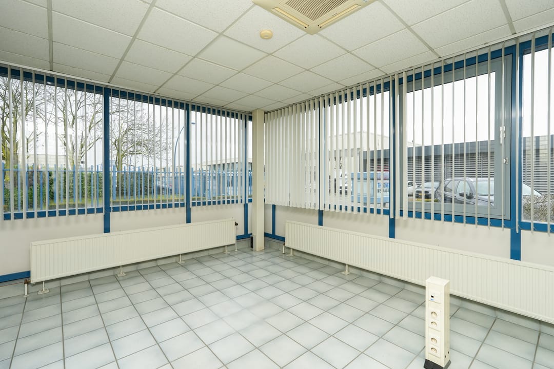 Het terrein direct achter de elektrische rolpoort is gedeeld. De buitenruimte welke tot het gehuurde behoort is 8 meter, gemeten vanaf de gevel van de bedrijfsruimte.