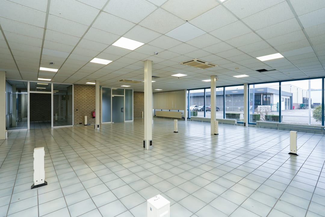Bedrijfsruimte met entresol, ca. 1.345 m², 393 m² kantoorruimte en een gedeeld buitenterrein.