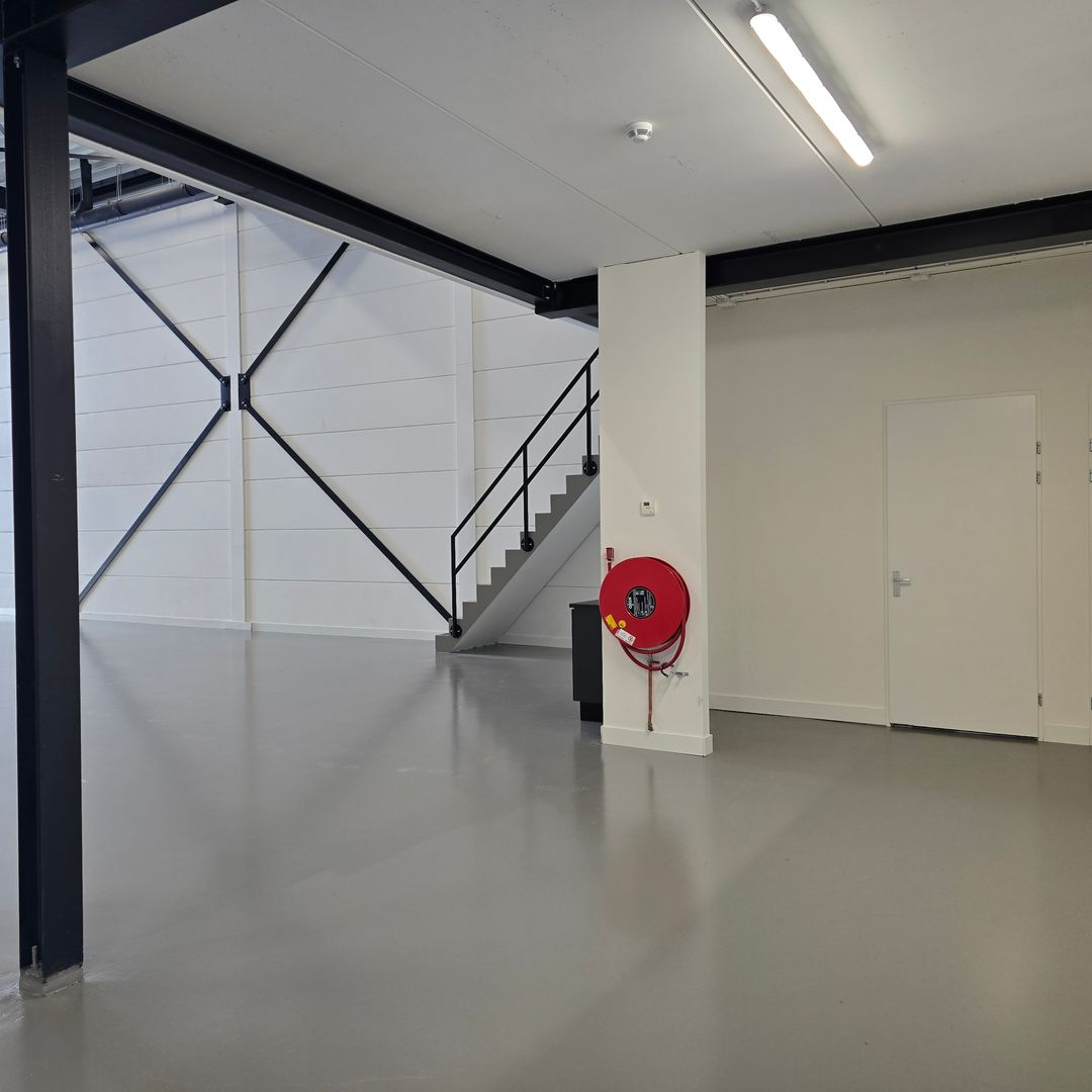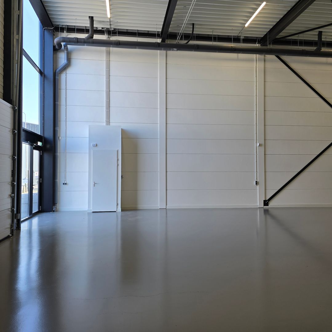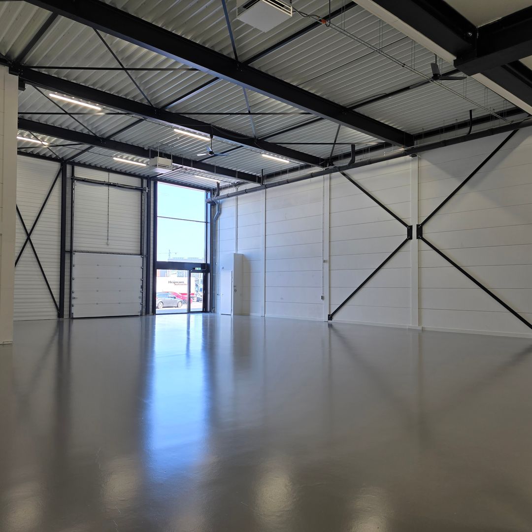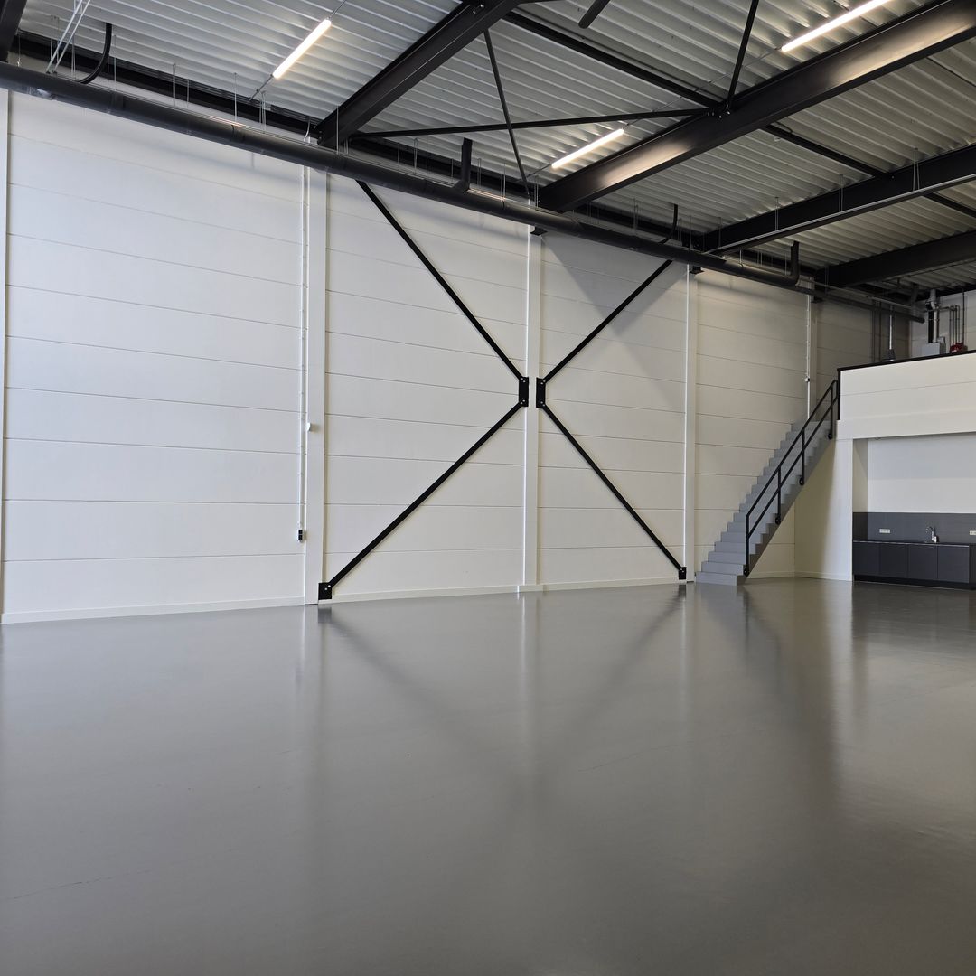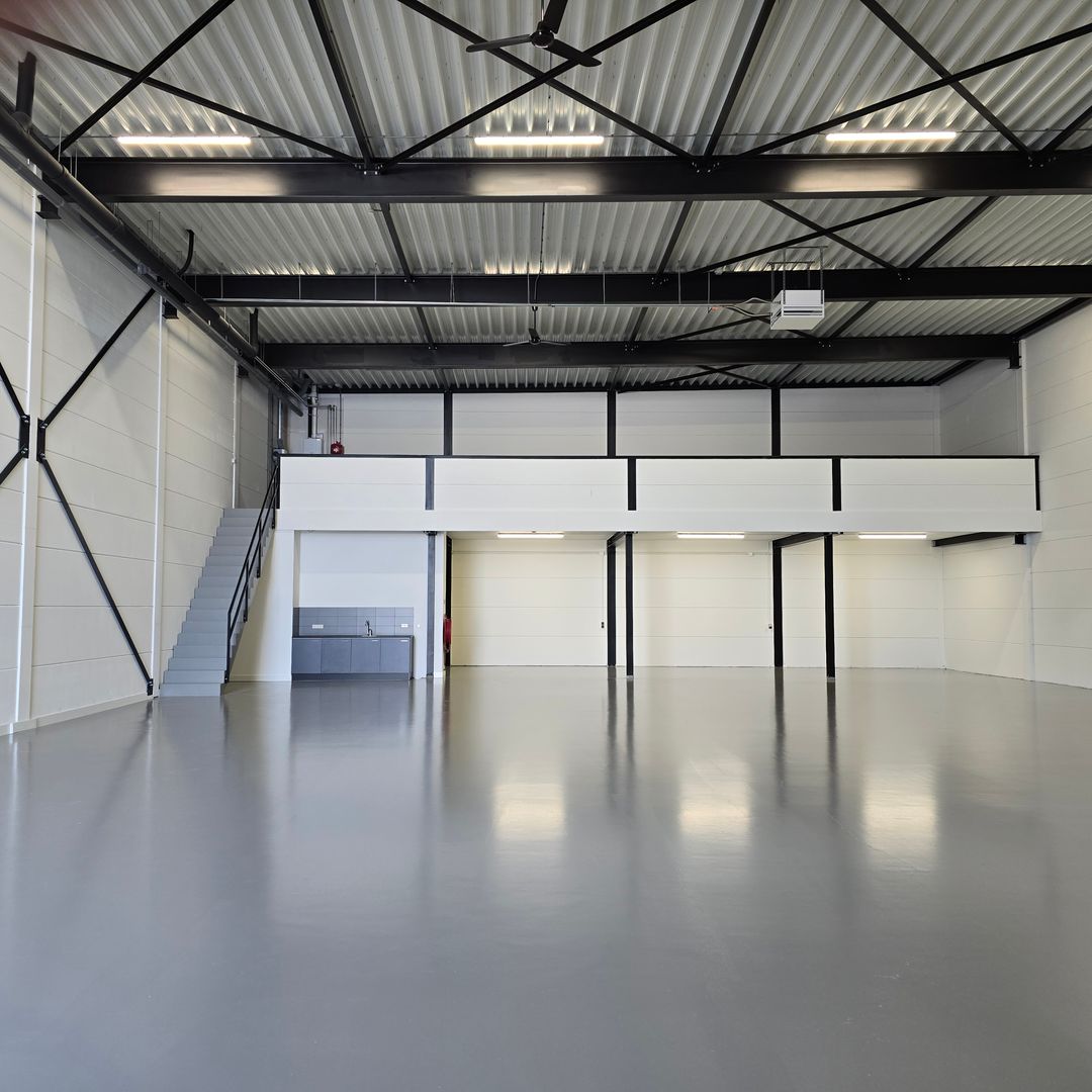 Stelt u zich voor: uw bedrijf gevestigd op een plek waar licht, ruimte en design elkaar versterken. Waar de zwarte staalconstructie en de hoge raampartijen een industriële kracht uitstralen en de zijdeglanzende vloer en de geschilderde wanden de ruimte een moderne, verzorgde en frisse uitstraling geven. Waar uw klanten binnenstappen en direct voelen: ‘dit bedrijf staat ergens voor’.
