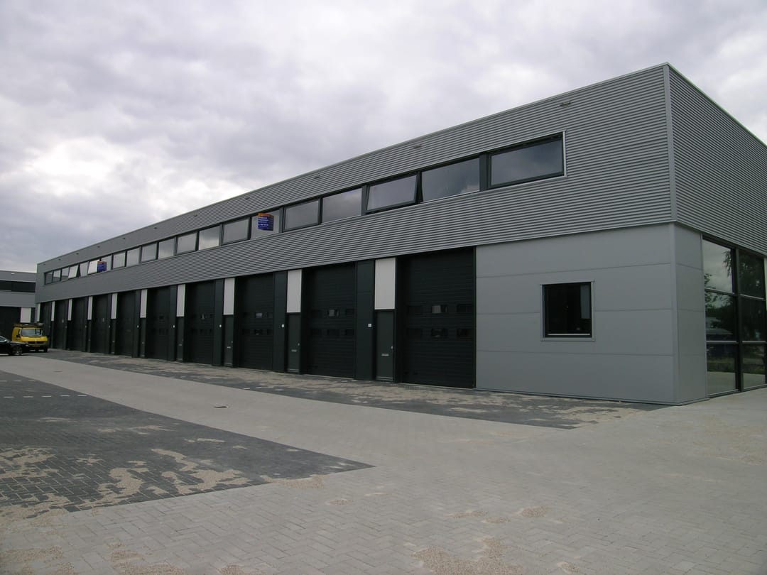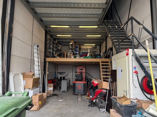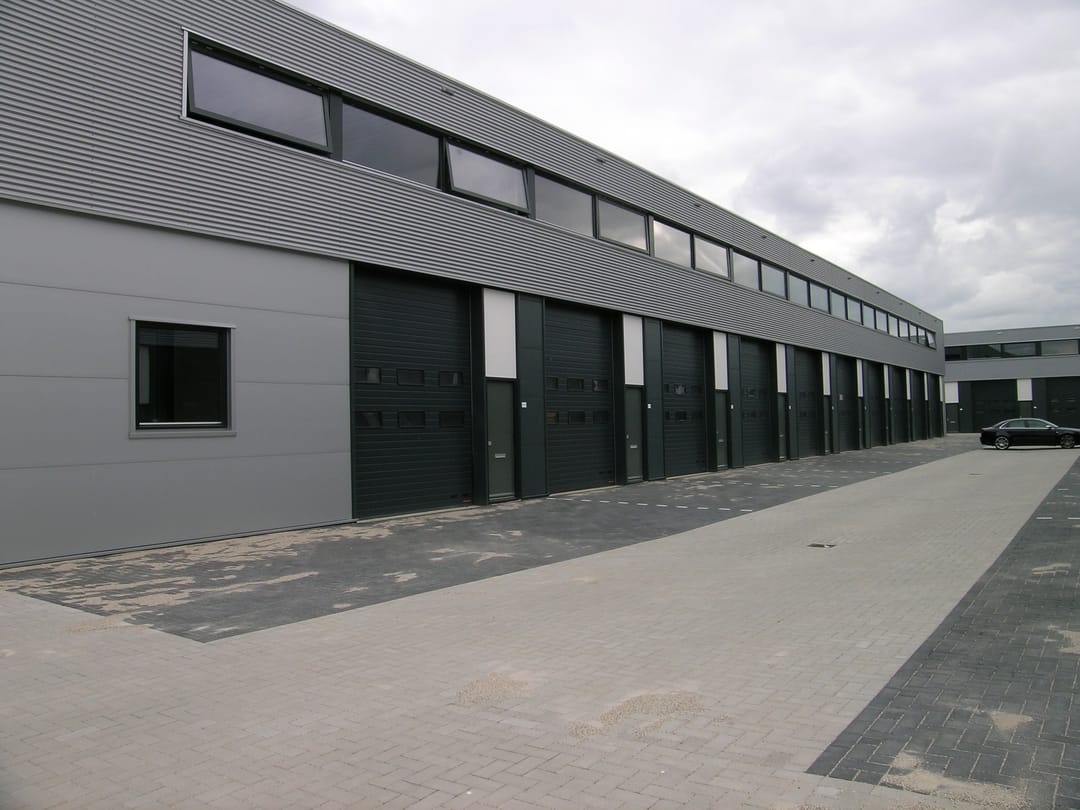 - Overheaddeuren, krachtstroom, betonvloer, toilet, pantry, airconditioning, inbouwarmaturen en te openen ramen