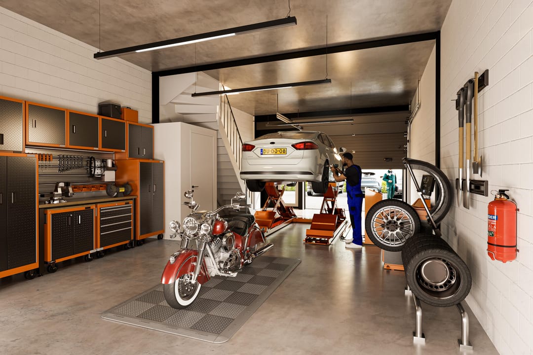- Overheaddeuren, betonvloer en toilet