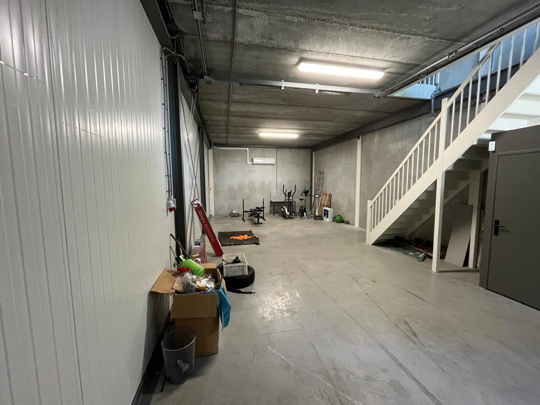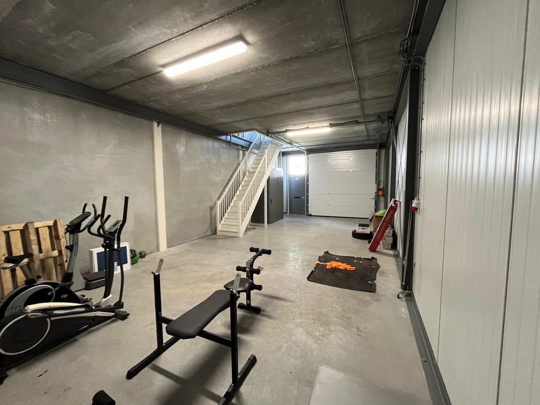 - Overheaddeuren, betonvloer, toilet, pantry en te openen ramen