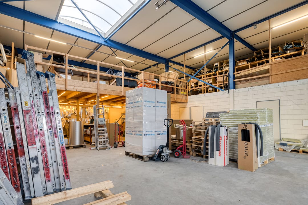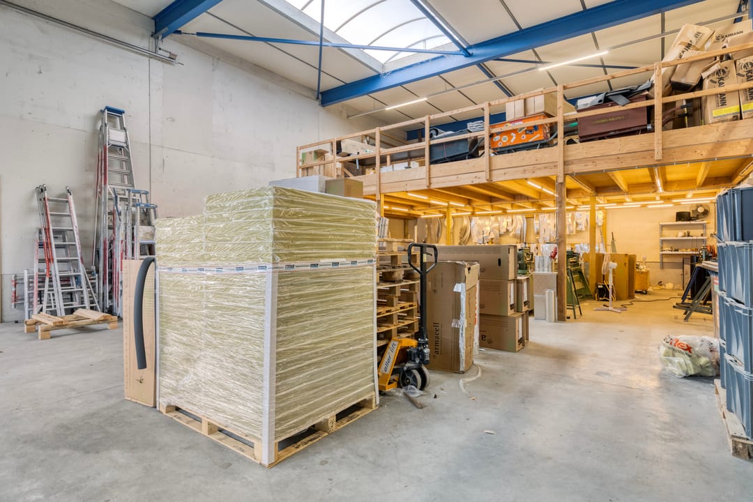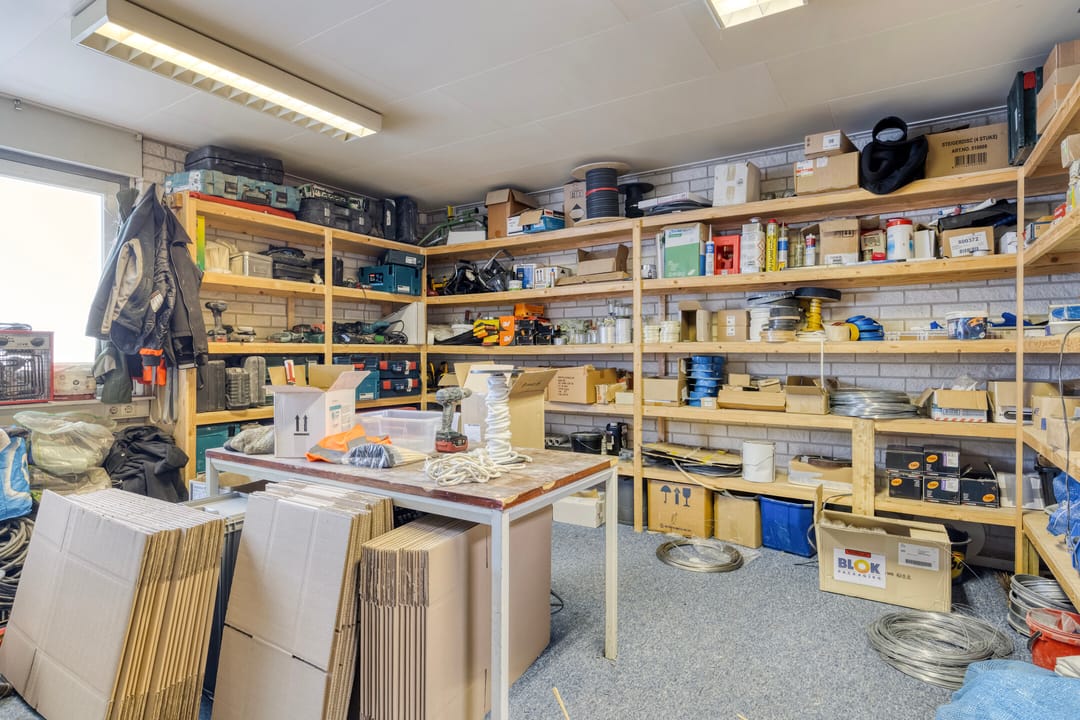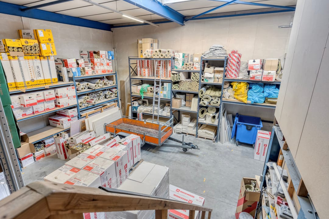 Entresol voor extra opslag en meerdere separate bergkamers.