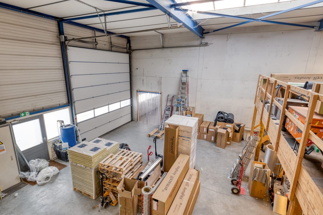 Bedrijfshal 1: ruime opslag-/werkhal met overheaddeur.
