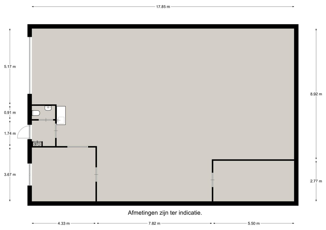 De bedrijfsruimte heeft in totaal een oppervlakte van ca. 210 m² en is geheel op de begane grond gelegen.