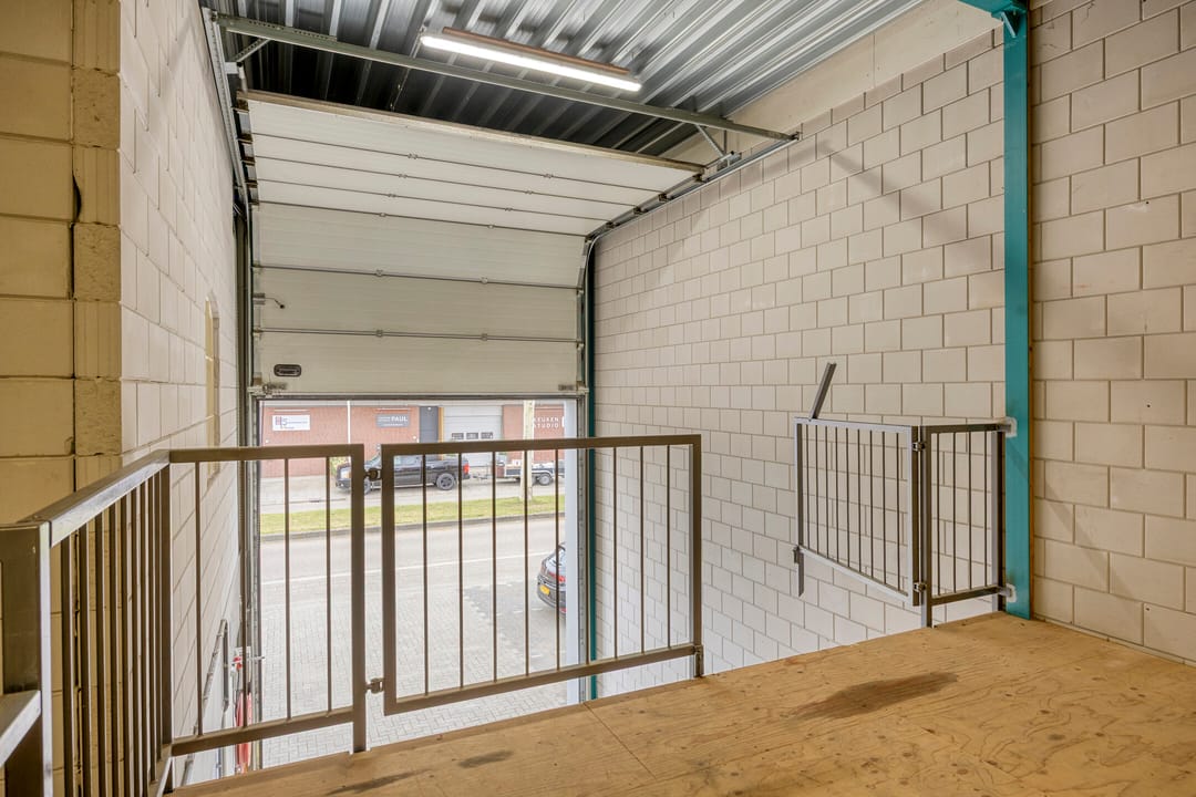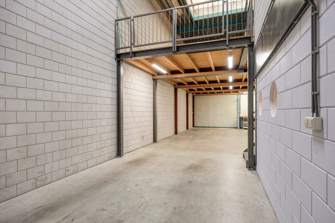 Opslagruimte en een kleine nette kantoorruimte aan de voorzijde. Bovenop de kantoorruimte is nog een kleine bergvliering.
