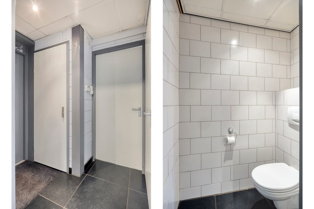 - Overheaddeuren, betonvloer, heater, toilet en pantry