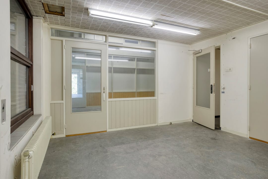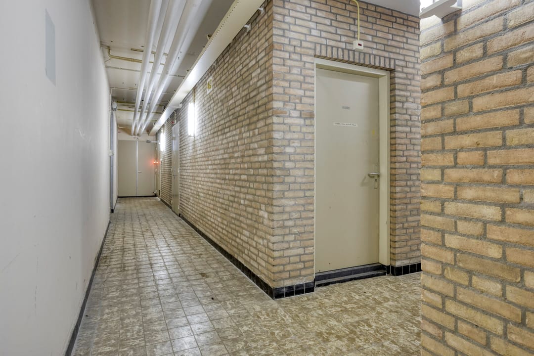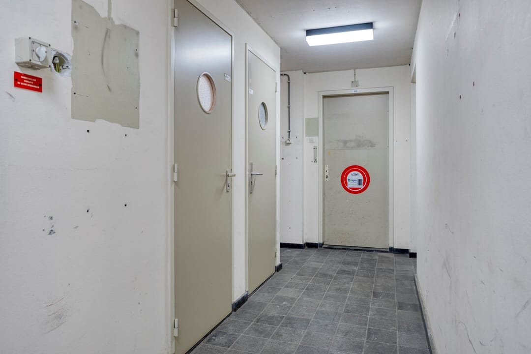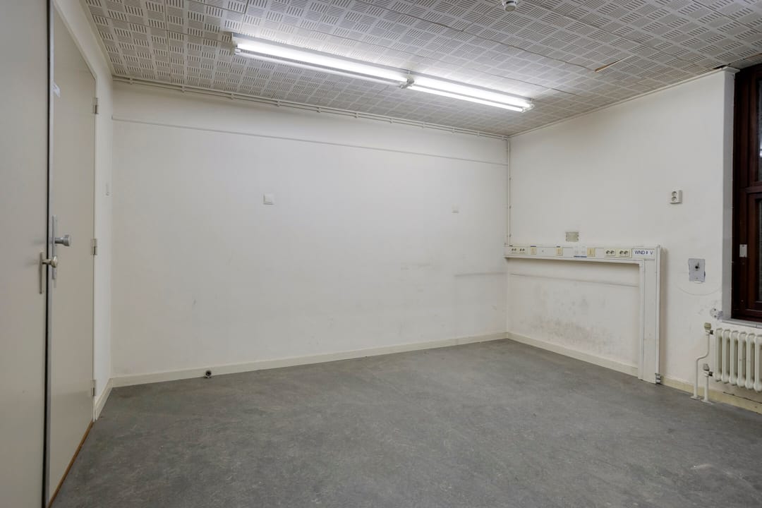 Centraal in het gebouw bevindt zich een verkeersruimte. Deze ruimte fungeert als ontsluitingsgebied en biedt toegang tot de verschillende ruimten en verdiepingen, de opslag en de facilitaire ruimten. Vanuit deze zone zijn de belangrijkste functies logisch en efficiënt bereikbaar.