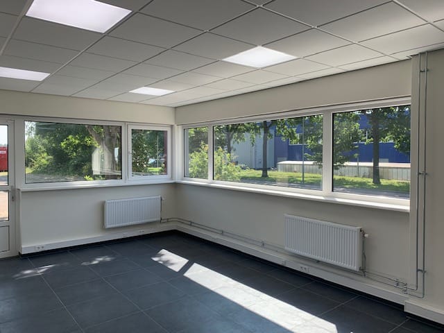 De kantoren zijn recent vernieuwd. Zo zijn de vloeren voorzien van fraaie antraciete plavuizen en zijn de wanden keurig strak afgewerkt. De toiletruimte beschikt over een zwevend toilet en voorportaal met fonteintje. De pantry is onder andere uitgerust met een koelkast en magnetron (beide inbouw). De kantoren kennen veel lichtinval via de schuifdeur en raampartijen. De kantoren zijn zowel vanuit de bedrijfshal alsook van buitenaf toegankelijk.