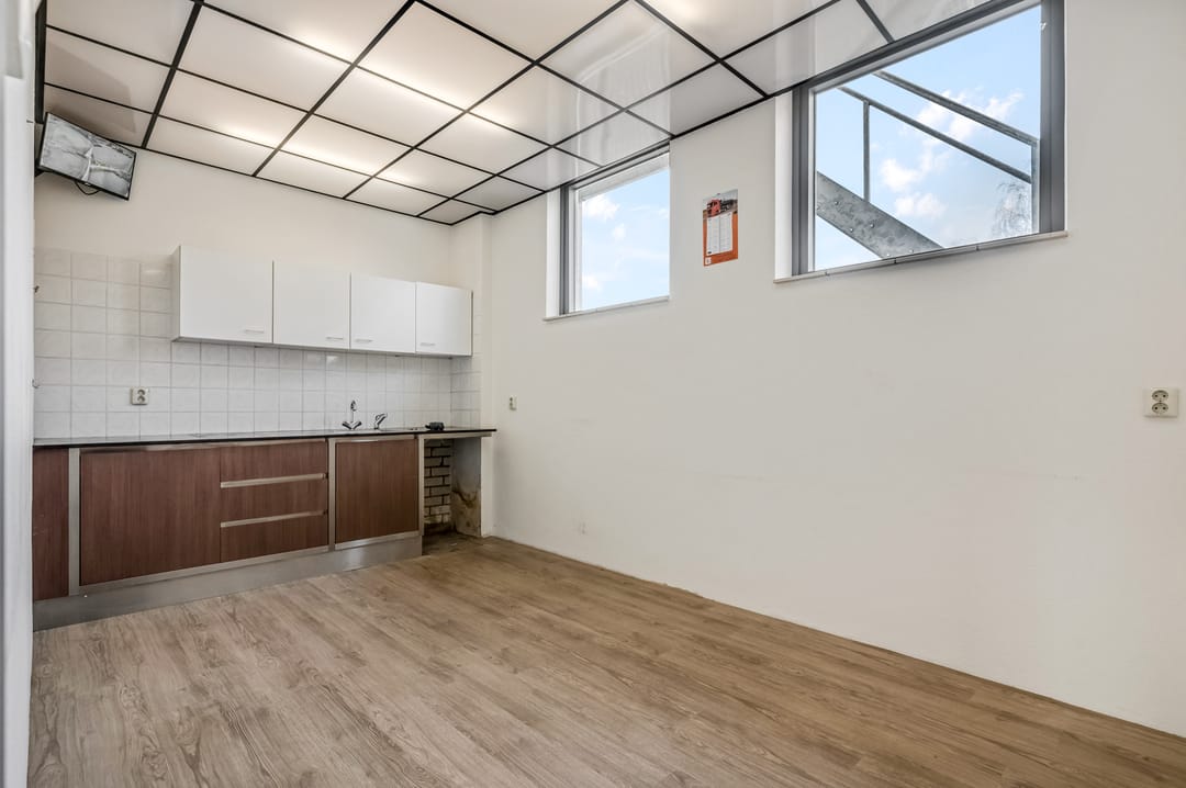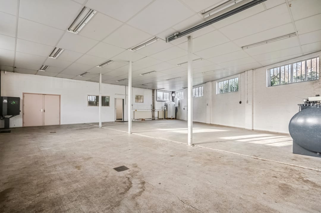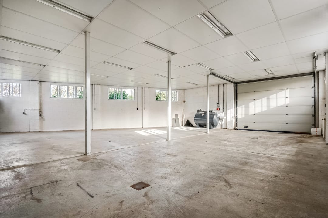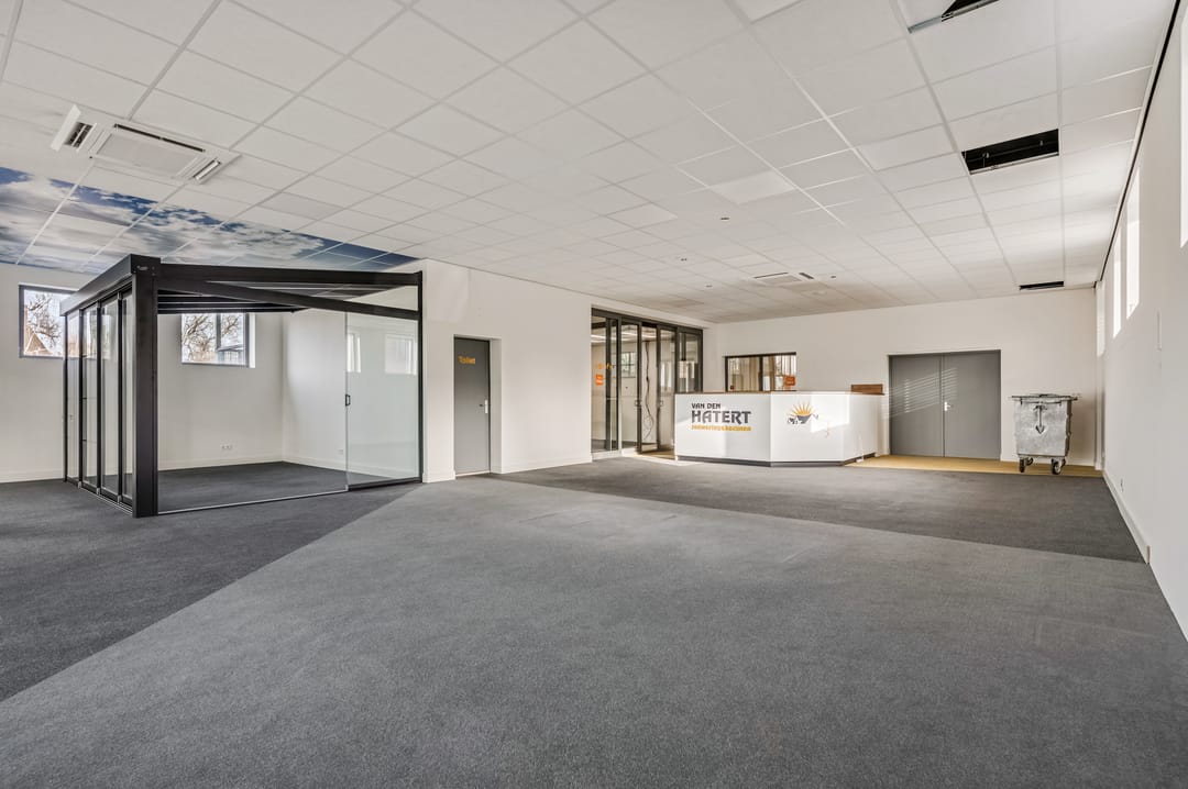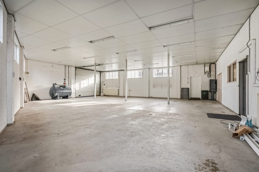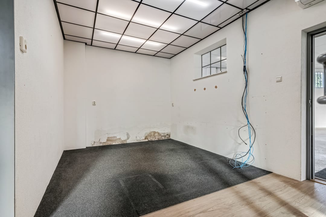 De achter de showroom gesitueerde bedrijfsruimte heeft een vrije hoogte van circa 3.20 meter. En is zowel via de showroom bereikbaar middels een toegangsdeur en twee openslaande deuren. De bedrijfsruimte heeft in de zijgevel een loopdeur en aan de achterzijde een overheaddeur.