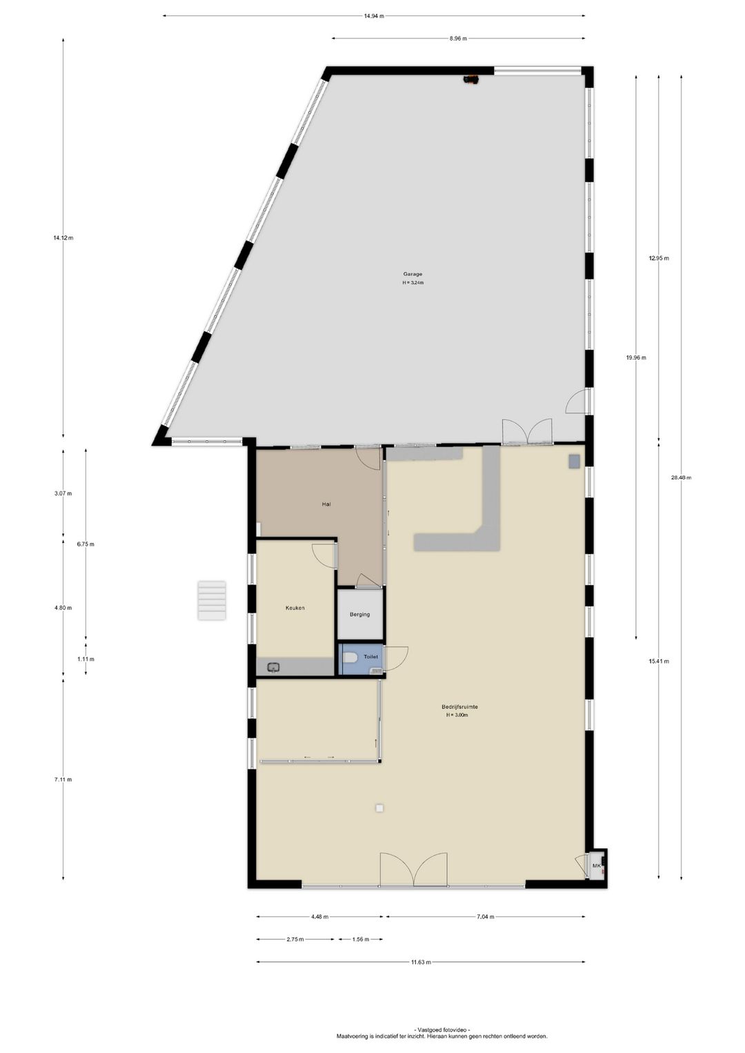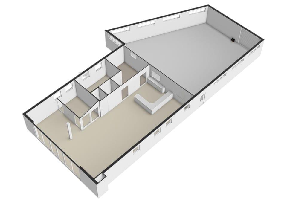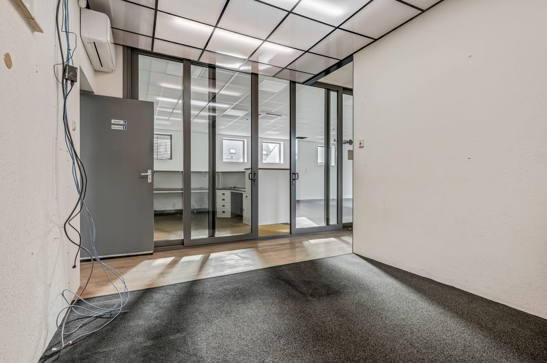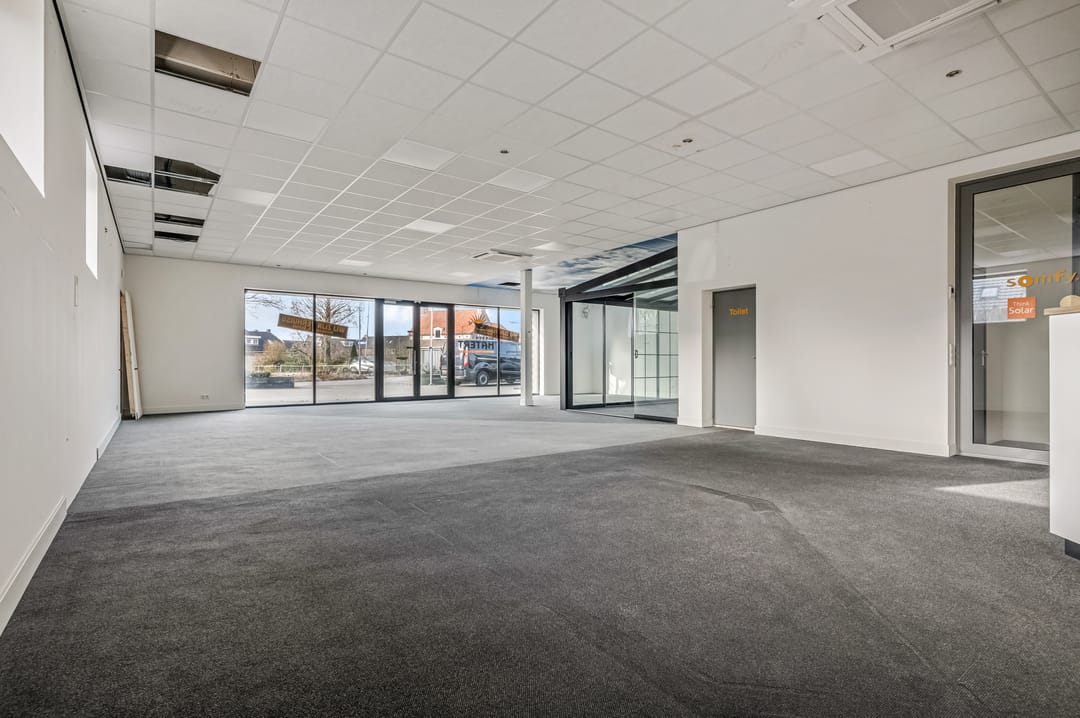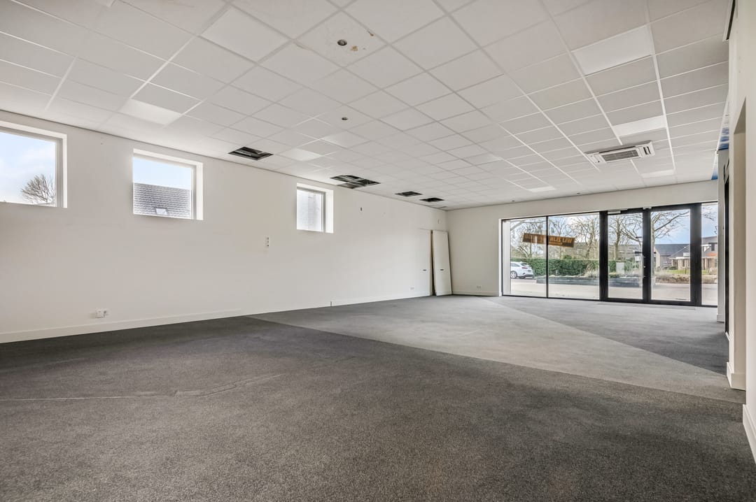 De achter de showroom gesitueerde bedrijfsruimte heeft een vrije hoogte van circa 3.20 meter. En is zowel via de showroom bereikbaar middels een toegangsdeur en twee openslaande deuren. De bedrijfsruimte heeft in de zijgevel een loopdeur en aan de achterzijde een overheaddeur.