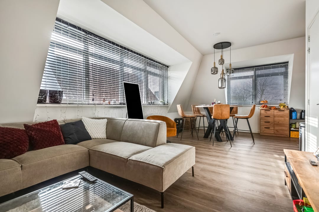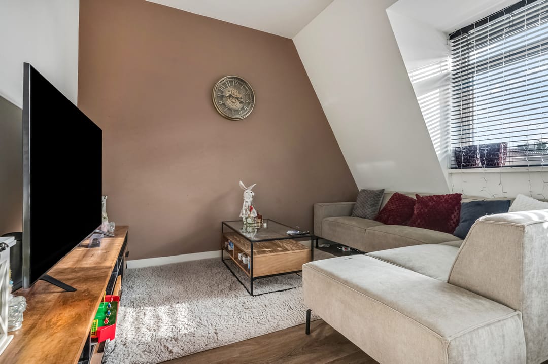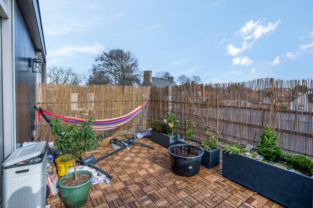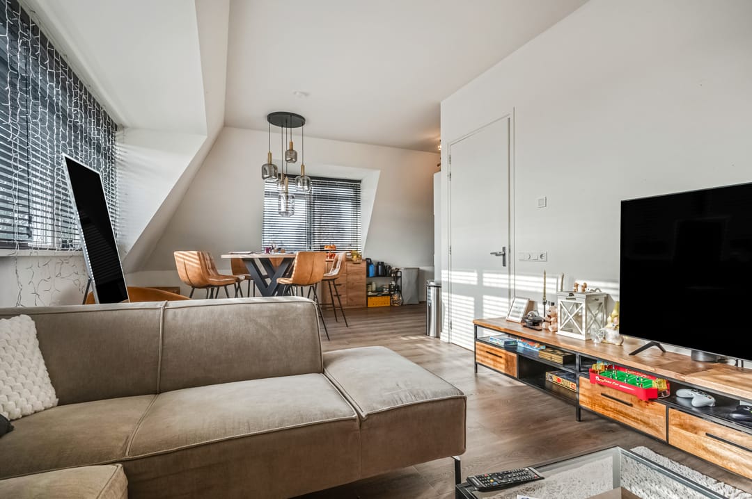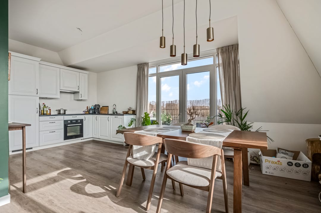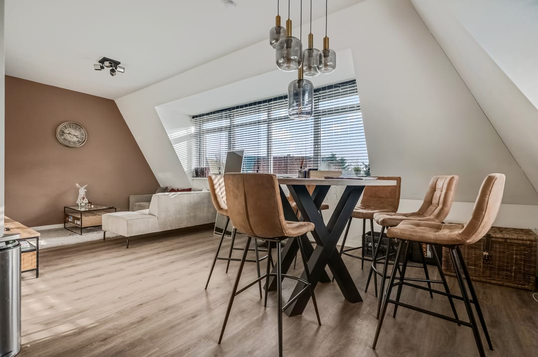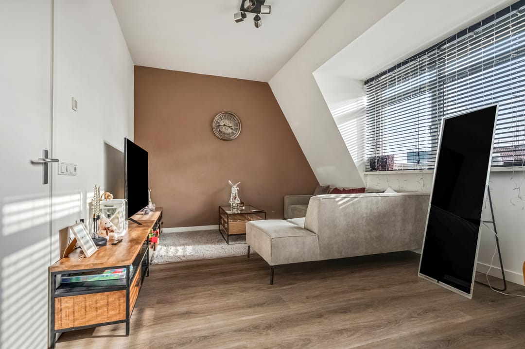 ontvangsthal, toiletruimte met een wandcloset en een fonteintje, berging, wasruimte met aansluiting voor de wasmachine, verzorgde badkamer met een instapdouche en een wastafelmeubel, 2 slaapkamers, gezellige woonkamer met een dakkapel, open keuken voorzien van een moderne hoekopstelling uitgerust met inbouwapparatuur en openslaande deuren naar een heerlijk dakterras.