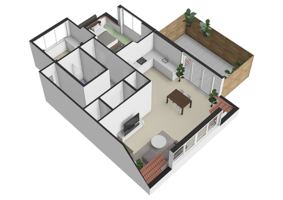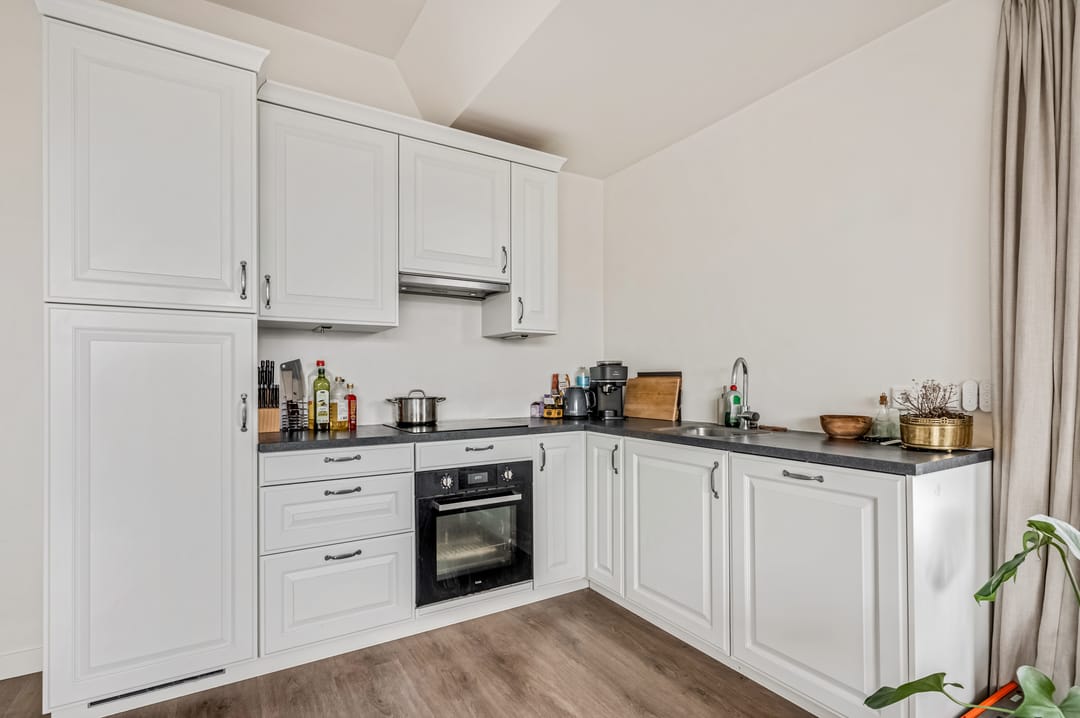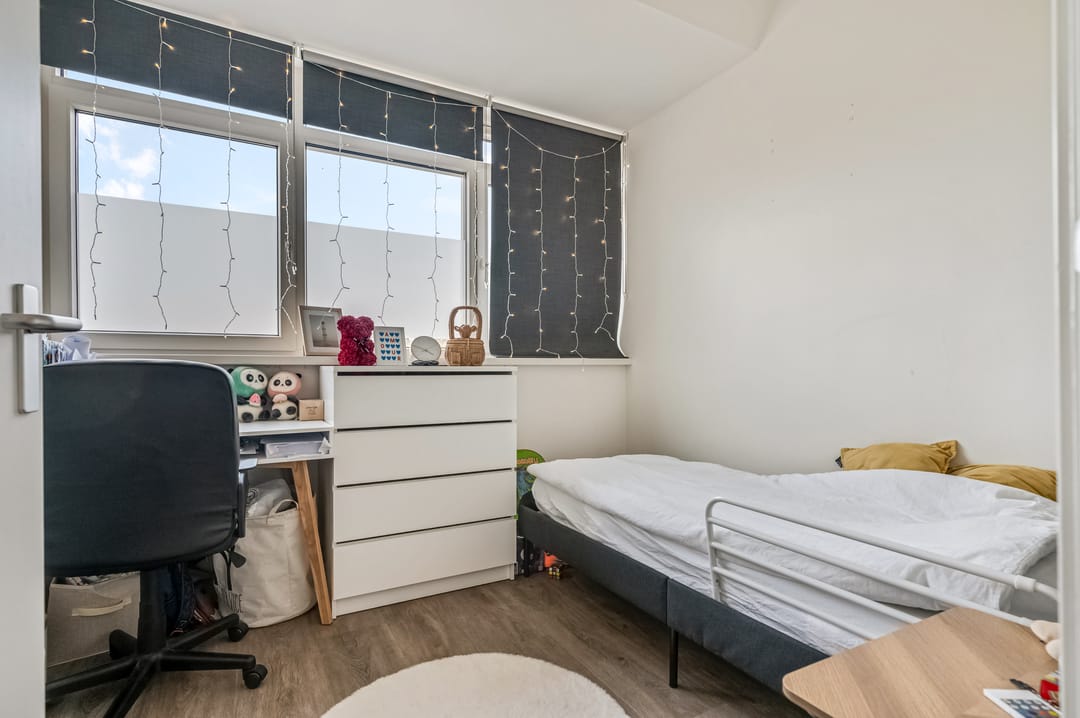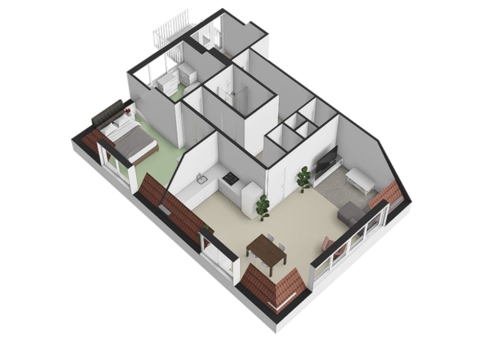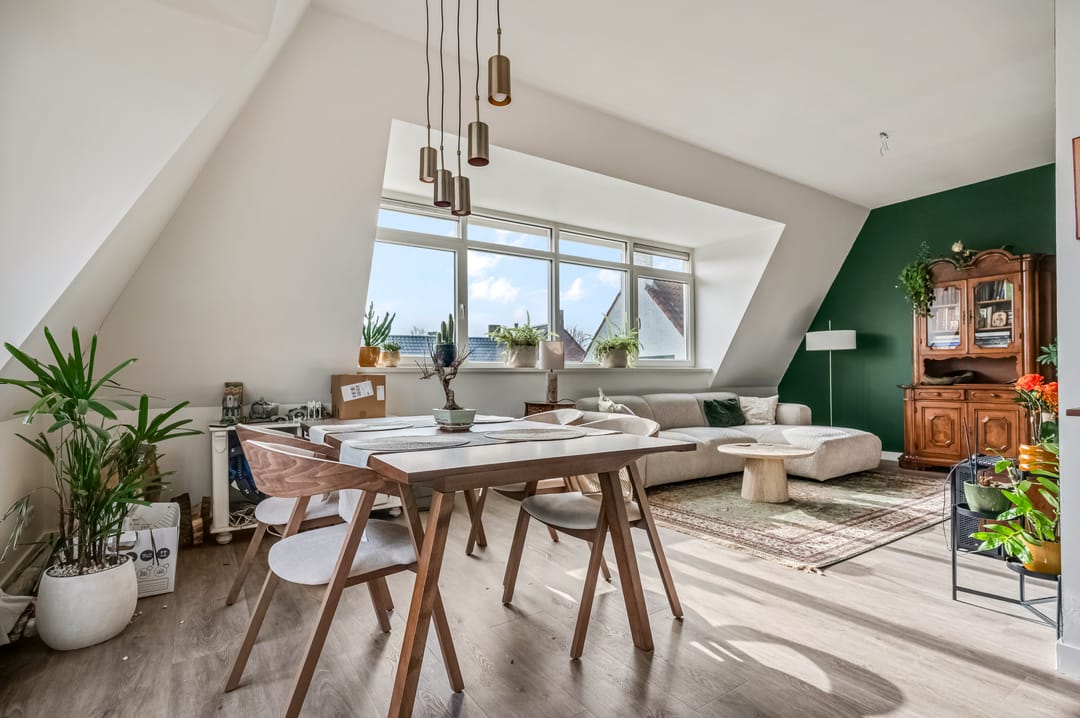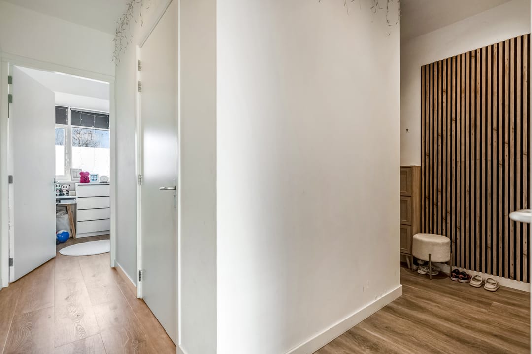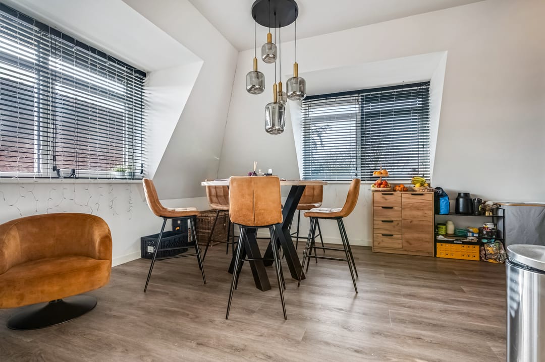ontvangsthal, toiletruimte met een wandcloset en een fonteintje, berging, wasruimte met aansluiting voor de wasmachine, verzorgde badkamer met een instapdouche en een wastafelmeubel, 2 slaapkamers, gezellige woonkamer met een dakkapel, open keuken voorzien van een moderne hoekopstelling uitgerust met inbouwapparatuur en openslaande deuren naar een heerlijk dakterras.