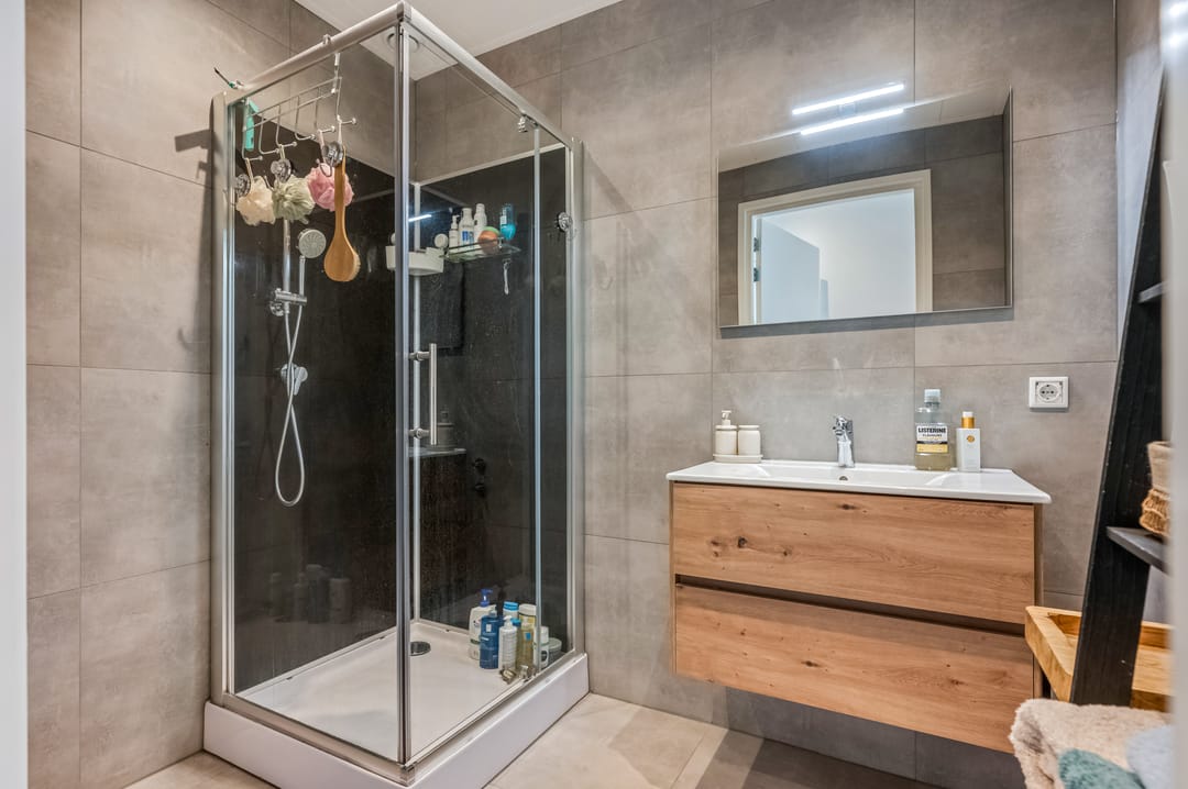 ontvangsthal, toiletruimte met een wandcloset en een fonteintje, meterkast, wasruimte met aansluiting voor de wasmachine, moderne badkamer met een instapdouche en een wastafelmeubel, 2 slaapkamers, gezellige woonkamer met een dakkapel, open keuken voorzien van een moderne hoekopstelling uitgerust met inbouwapparatuur.