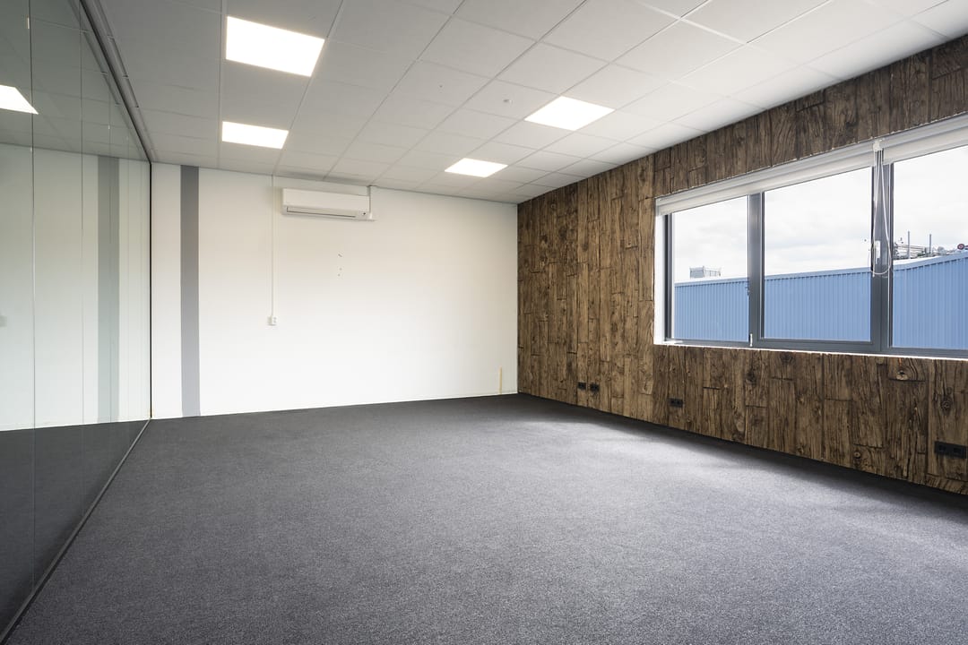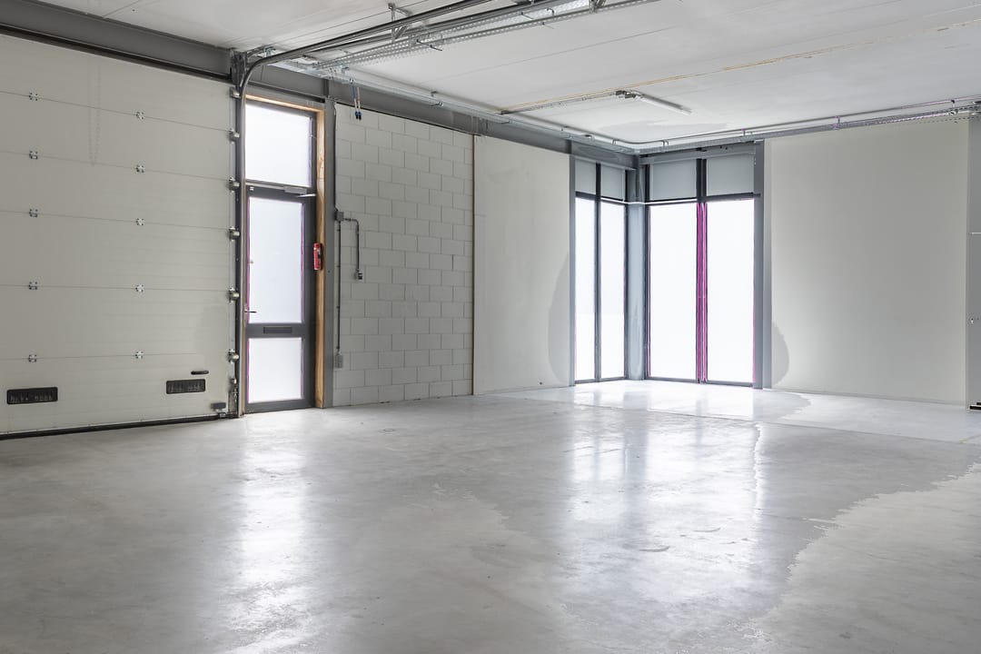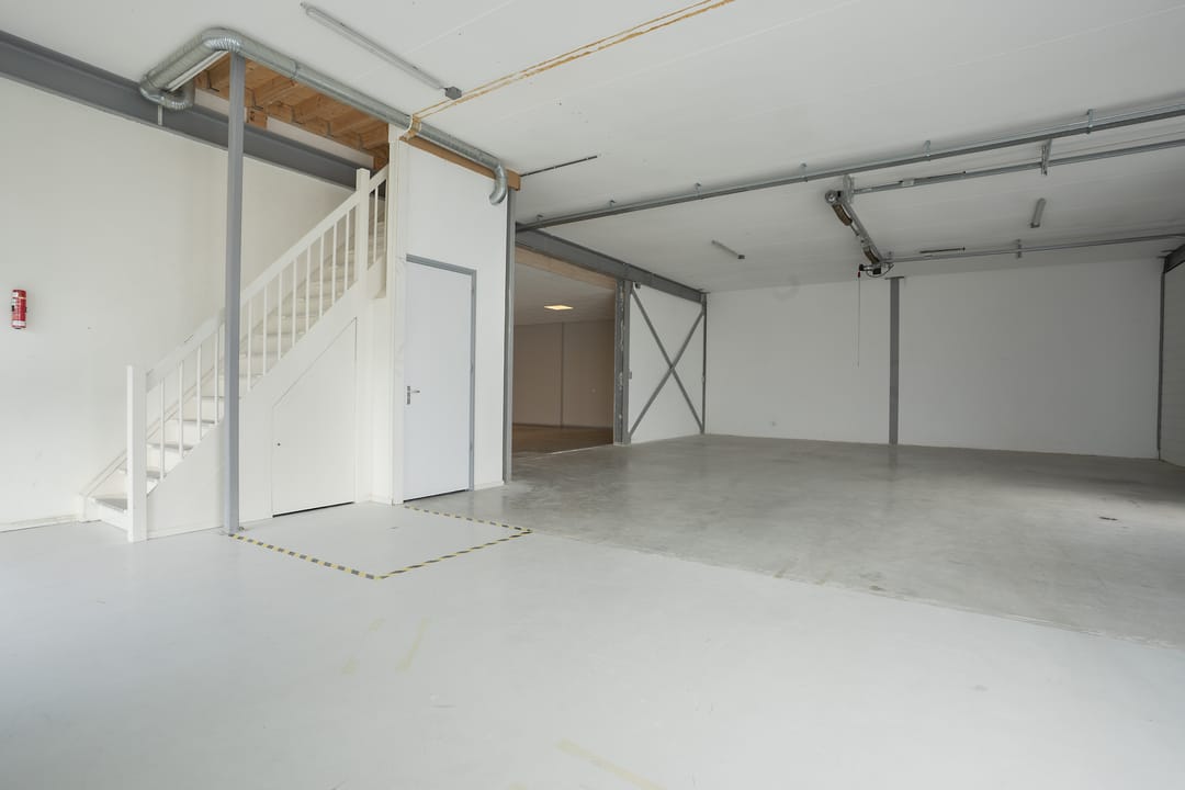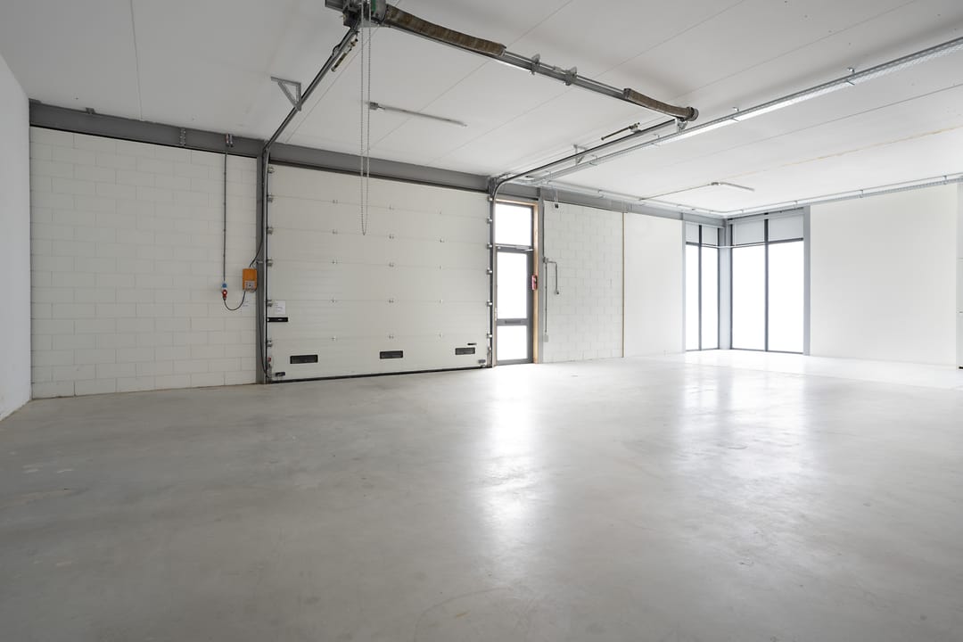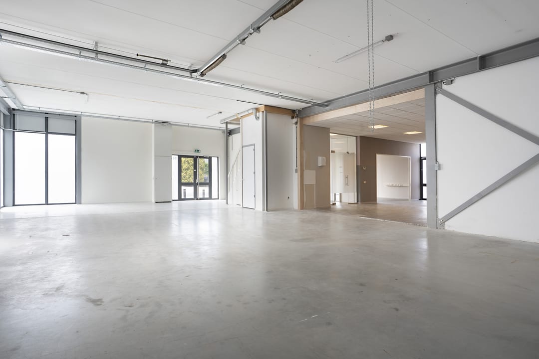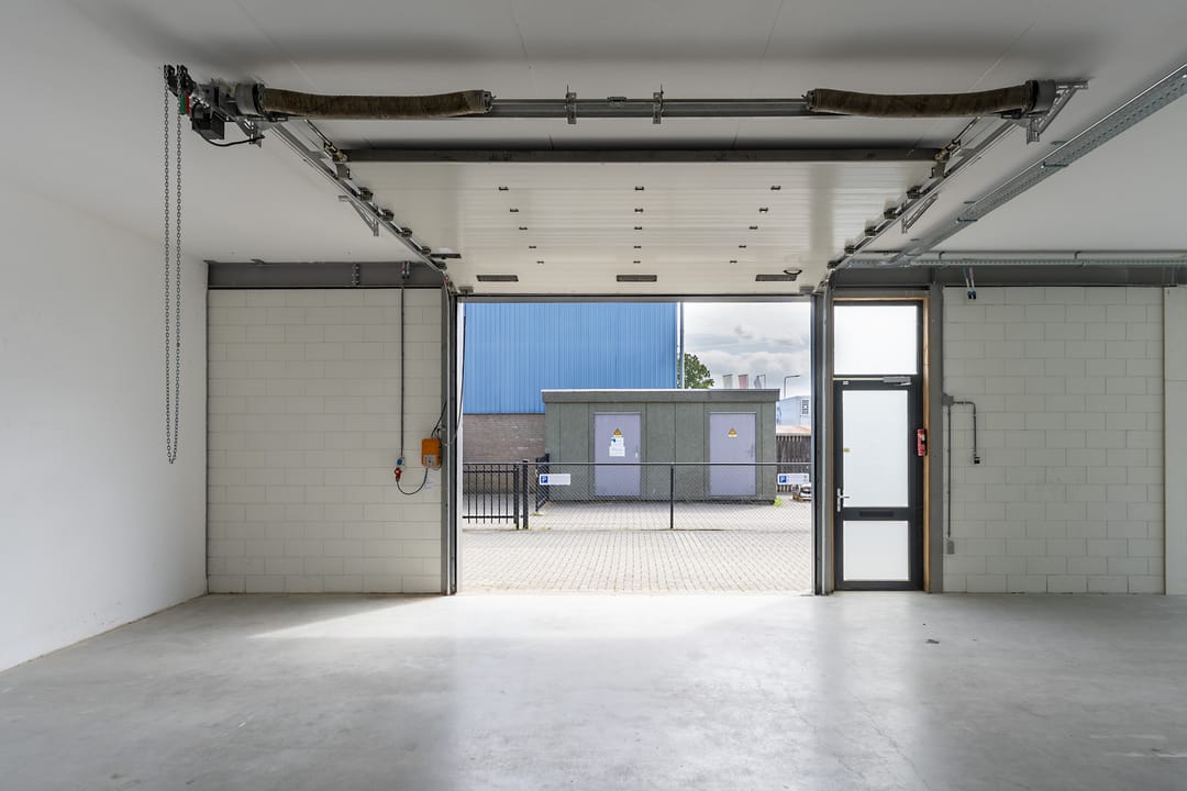 - Airconditioning, overheaddeuren, krachtstroom, betonvloer, toilet, inbouwarmaturen en te openen ramen