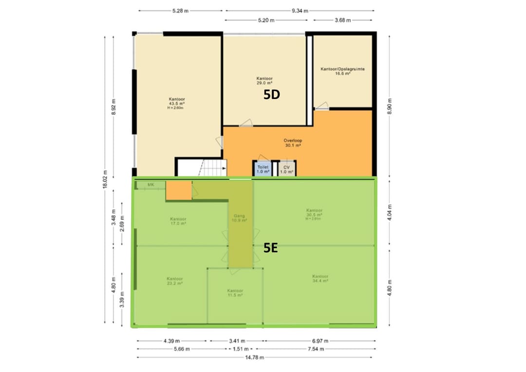 Uitbreiding van het metrage is mogelijk met de naastgelegen unit.
