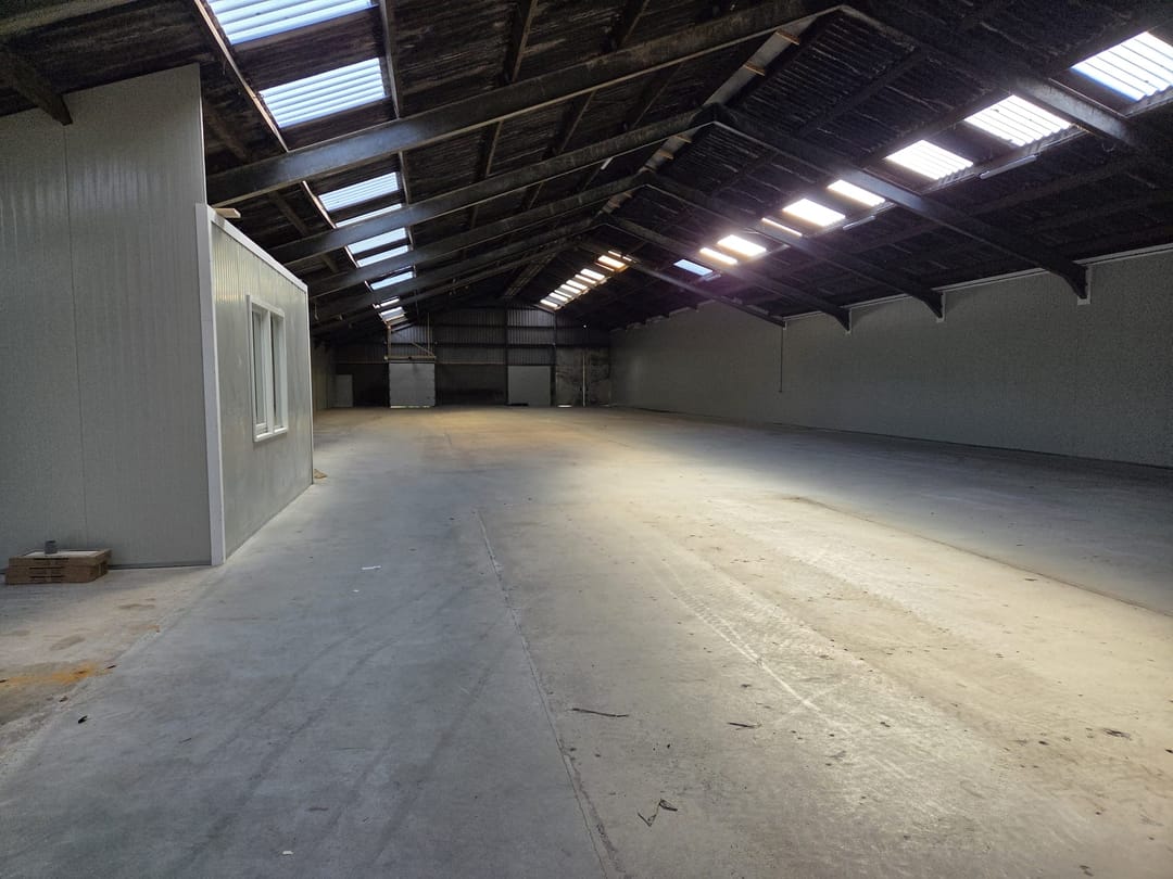 De loods heeft een geheel vrije overspanning, wat zorgt voor een efficiënte indeling zonder hinderlijke kolommen.