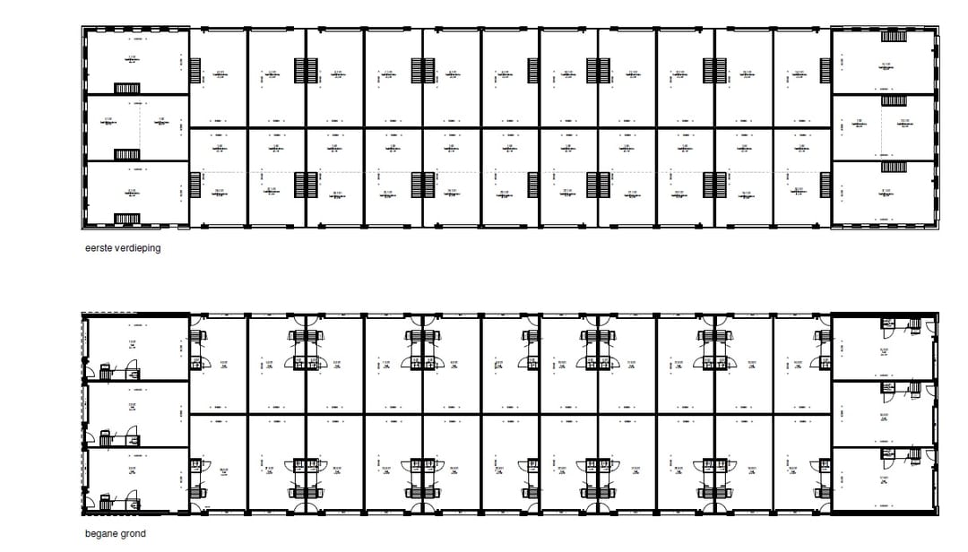 De units beschikken over een oppervlakte van ca. 116 m² BVO, gelijkmatig verdeeld over twee bouwlagen (begane grond ca. 58 m² BVO en verdieping ca. 58 m² BVO).