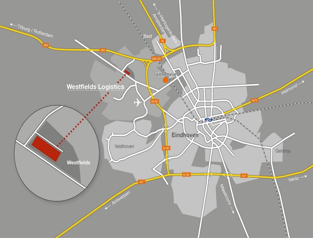 Bedrijventerrein Westfields is strategisch gelegen tussen de Randstad, het Ruhrgebied en België, op een kruispunt van de snelwegen A58, A2, A50 en A67 en daarmee uiterst goed bereikbaar. Het logistieke park ligt tegen Eindhoven aan, in het hart van de economische topregio Brainport.