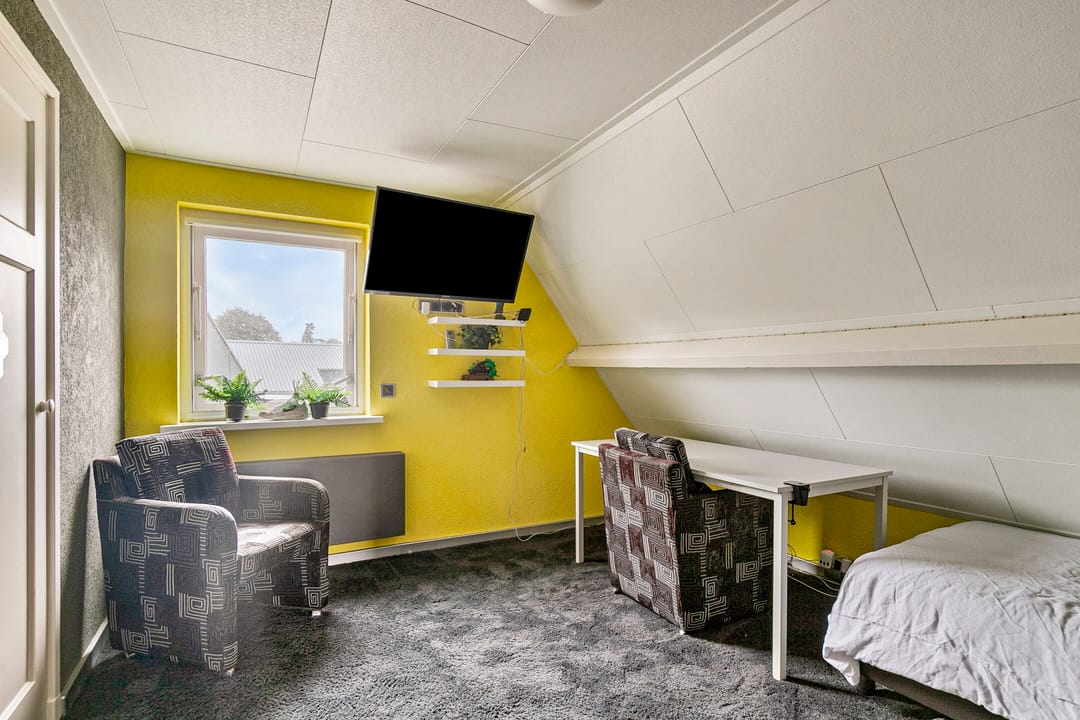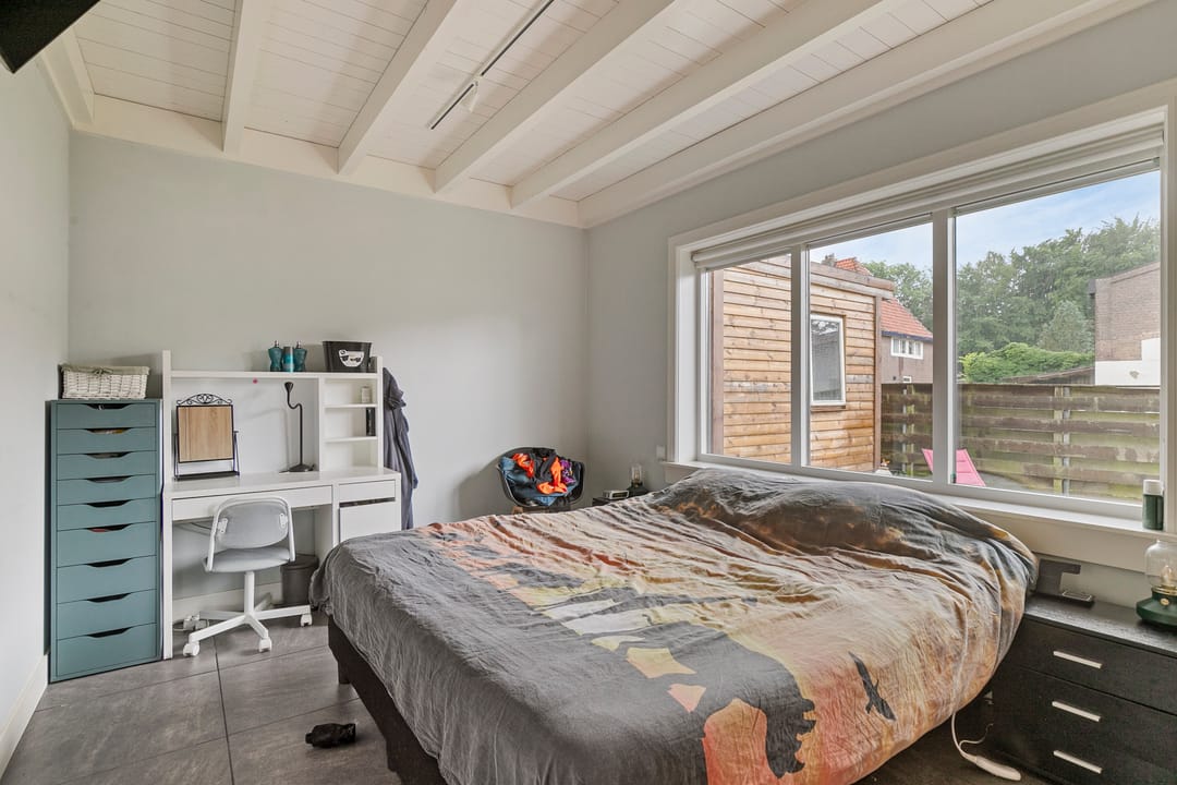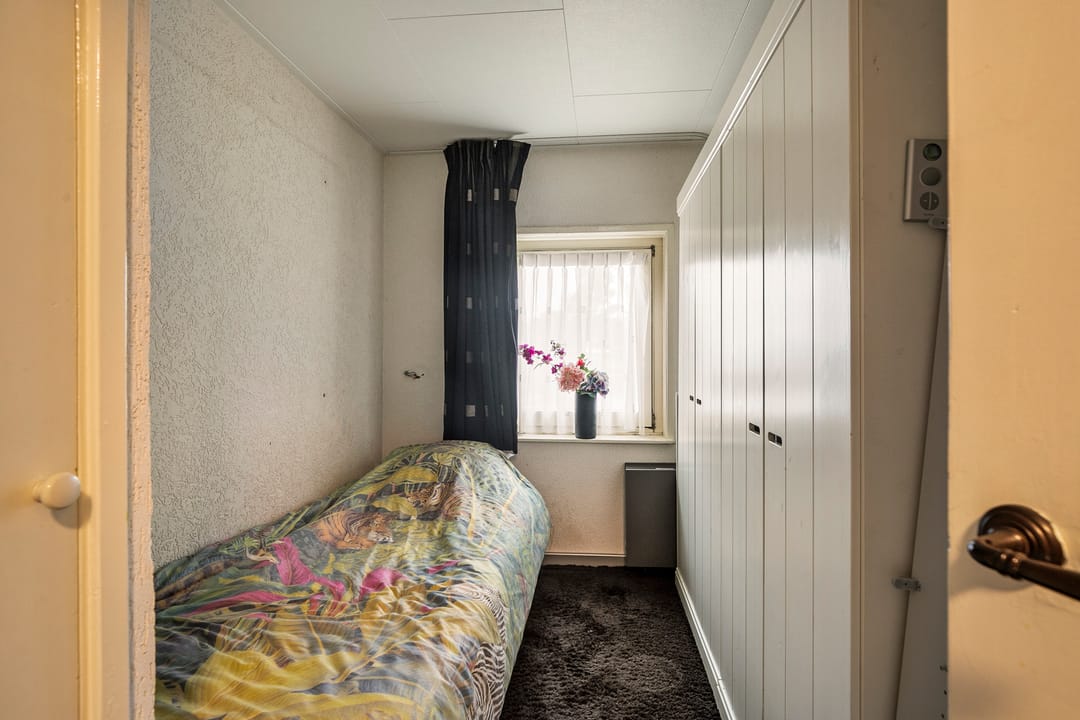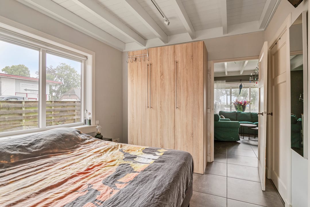 Vanuit de woonkamer heeft u toegang tot de slaapkamer, voorzien van vaste kasten en rolluiken.