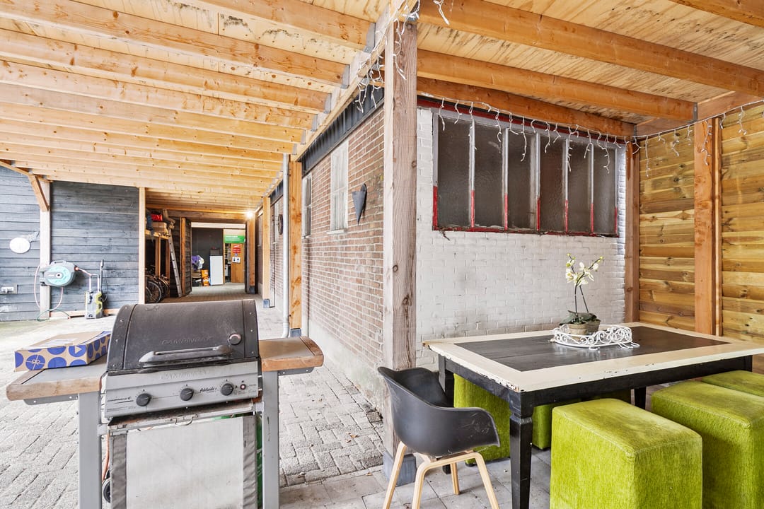 De onderhoudsvrije tuin is voorzien van een ruim terras en een overkapping waar minimaal twee auto's onder kunnen staan. Ook is er een eigen 'bar', ideaal voor gezellige momenten met familie en vrienden.