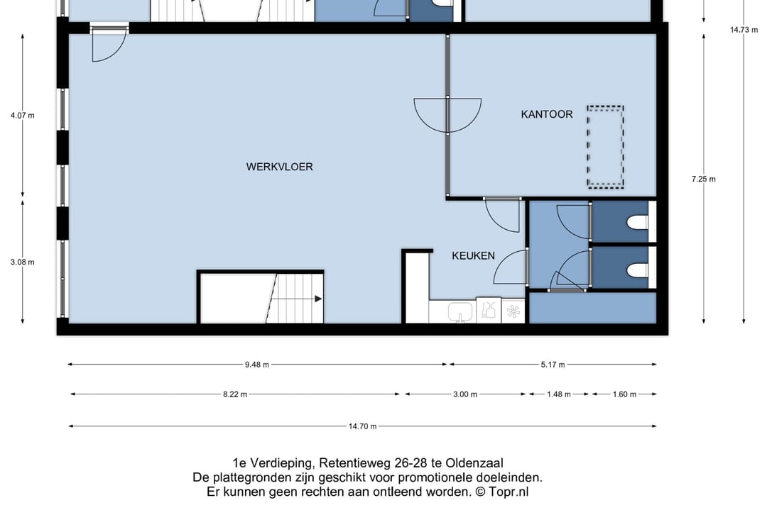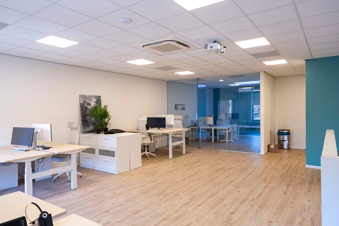 De kantoorruimte is gelegen op de 1e verdieping en heeft een totale oppervlakte van ca. 101 m². Door de hoge raampartijen is er veel lichtinval in de kantoorruimte en heeft een prettige werkklimaat. U kunt uw klanten goed ontvangen in deze representatieve ruimte met mogelijkheden voor een showroom of presentatieruimte. De kantoren hebben een hoog afwerkingsniveau met o.a. glazenwanden, pvc-vloerafwerking, ledverlichting en vloerverwarming.