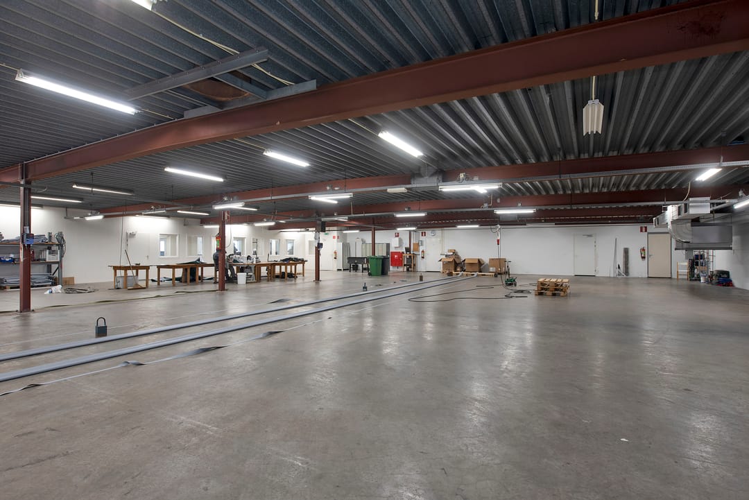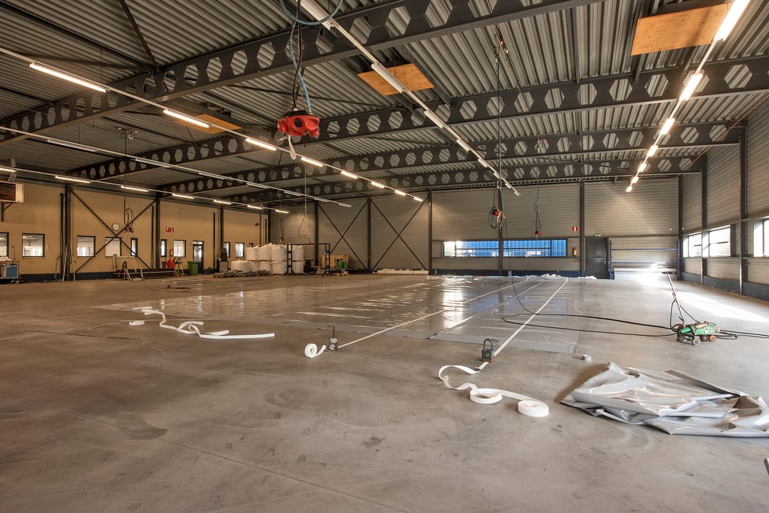 - Overheaddeuren, betonvloer, heater, toilet en airconditioning