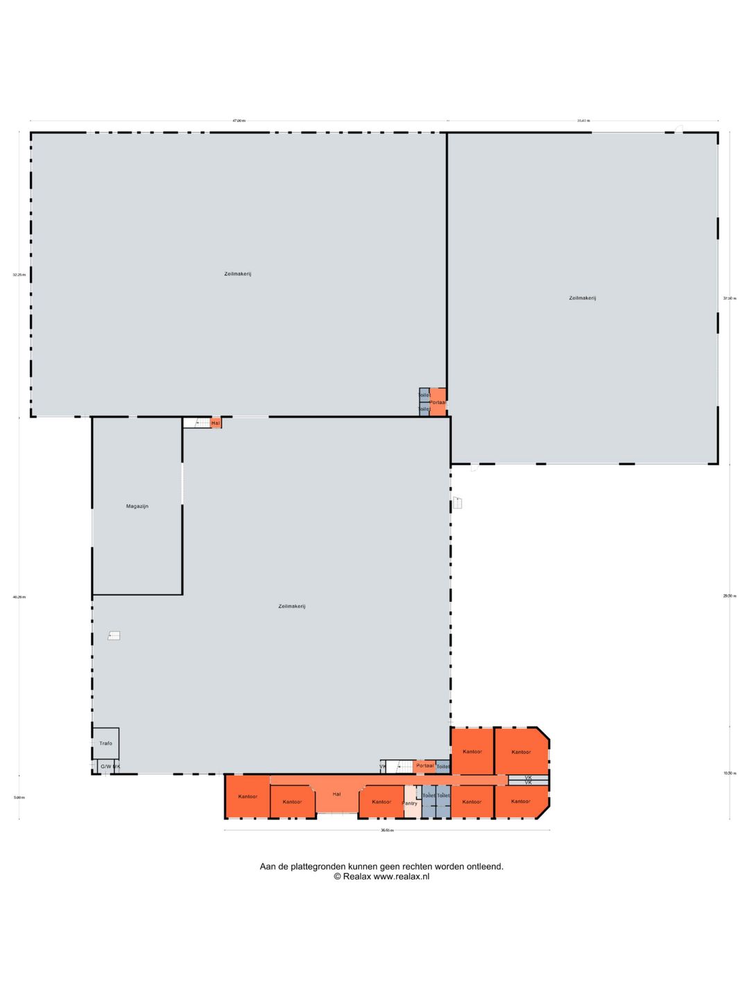 • Volledig vrije overspanning in 2 bedrijfsruimten ( 31 x 47 mtr. + 30 x 37 mtr.)