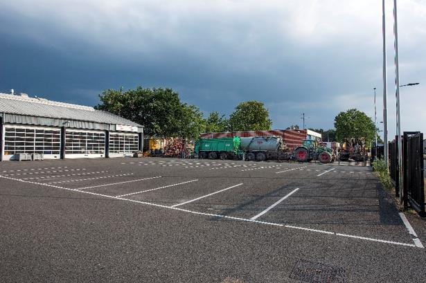 - Geheel geasfalteerd en omheind ruim parkeerterrein