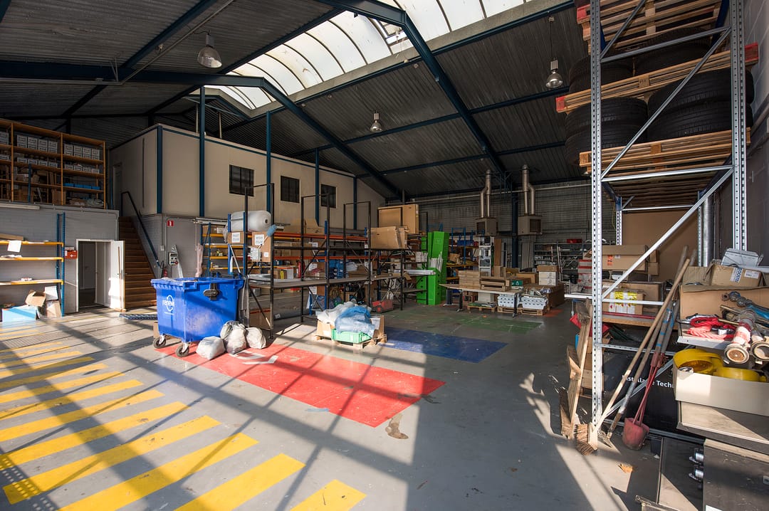 - Mechanische ventilatie, lichtstraten, overheaddeuren, betonvloer, heater, toilet en pantry