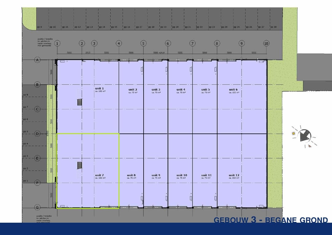 - Gebouw III unit 7, 192 m², 75 m² op de verdieping en circa 20 m² buitenruimte.