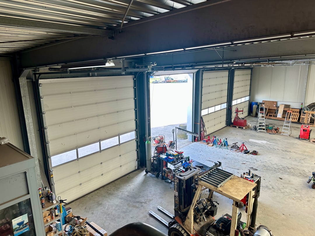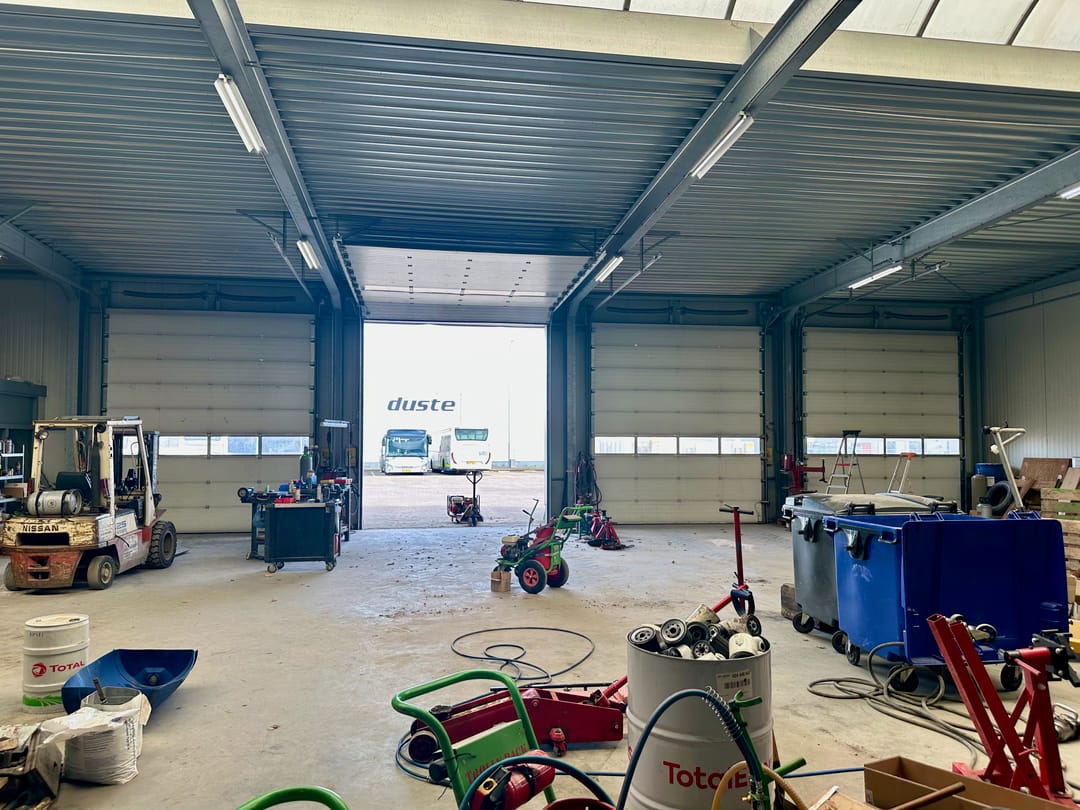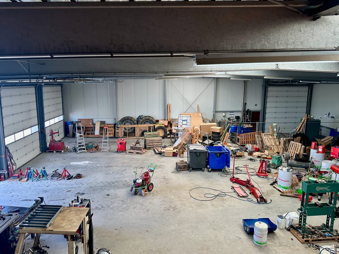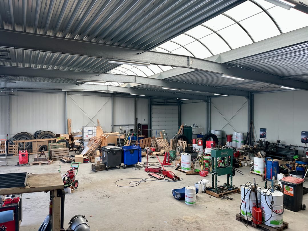 - Lichtstraten, overheaddeuren, krachtstroom, betonvloer, heater, toilet, pantry en te openen ramen