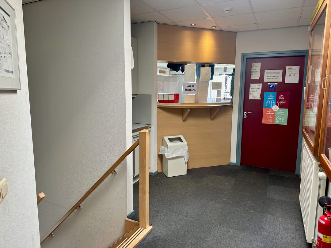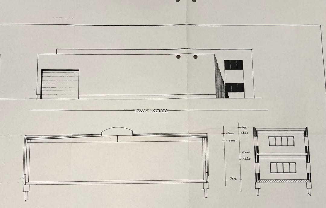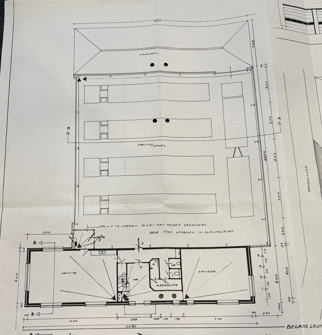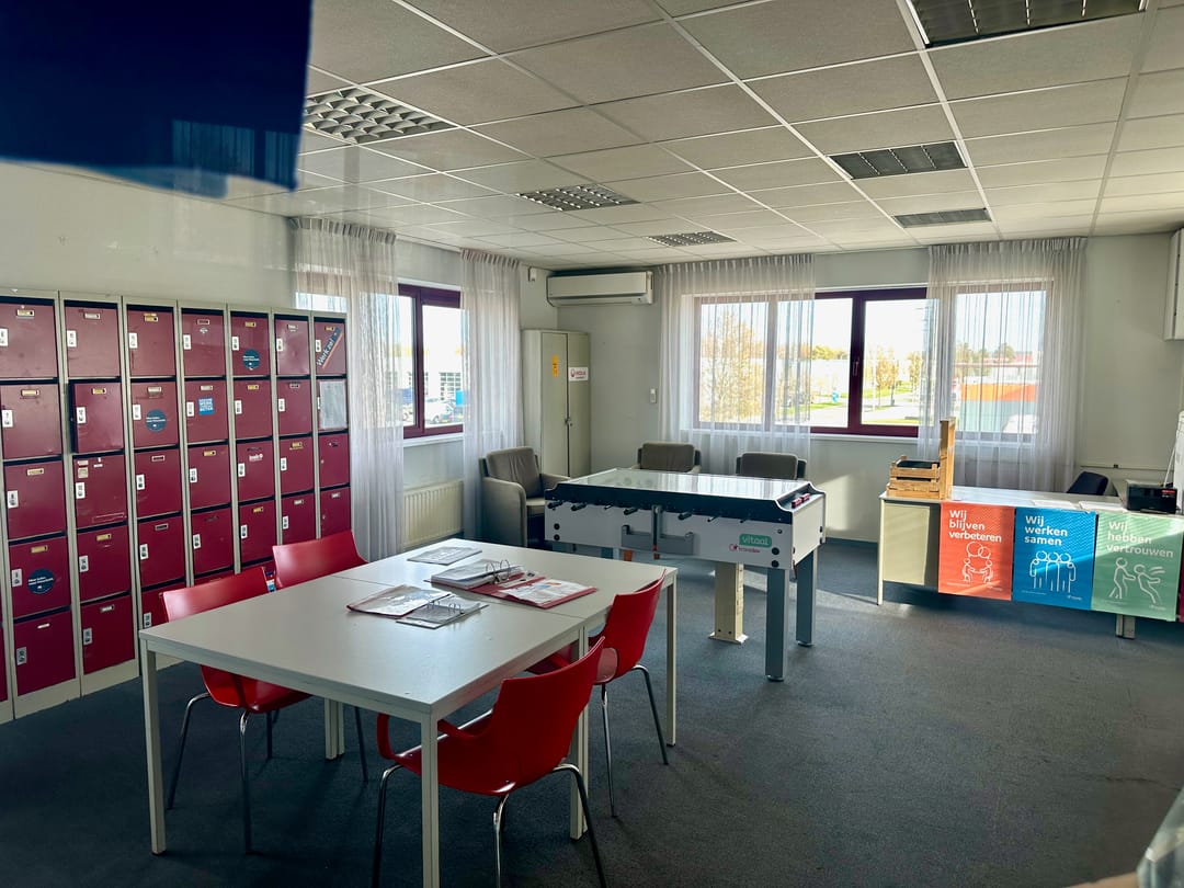 - Kantine van ca. 60 m² (circa 10 × 6 m) met toegang tot de loods